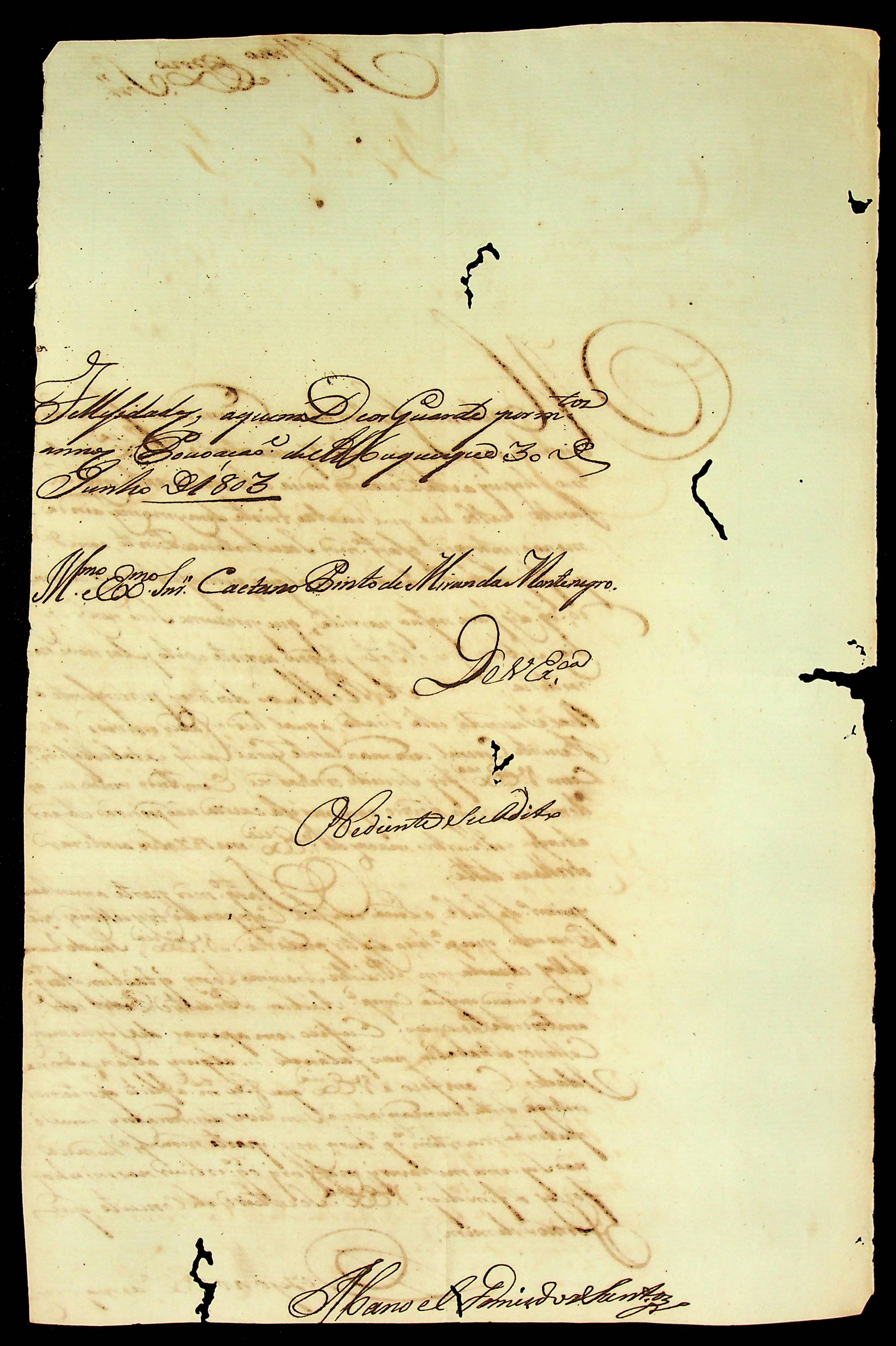 CARTA do [Comandante] Manoel Gomes dos Santos ao [Governador e Capitão-General da Capitania de Mato Grosso] Caetano Pinto de Miranda e Montenegro.