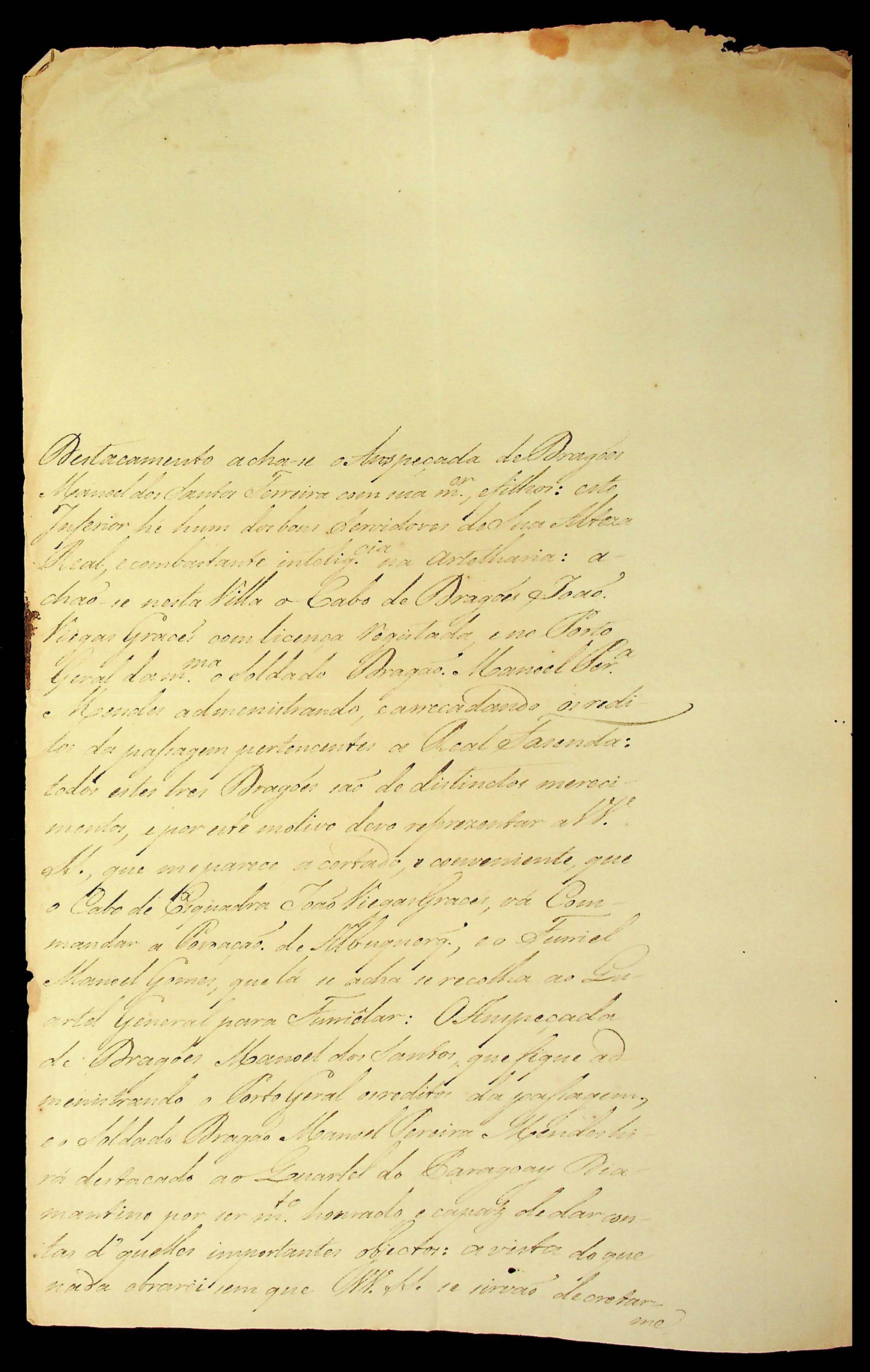 CARTA do Mestre de Campo Comandante José Paes Falcão das Neves à Segunda Junta Governativa da Capitania de Mato Grosso.