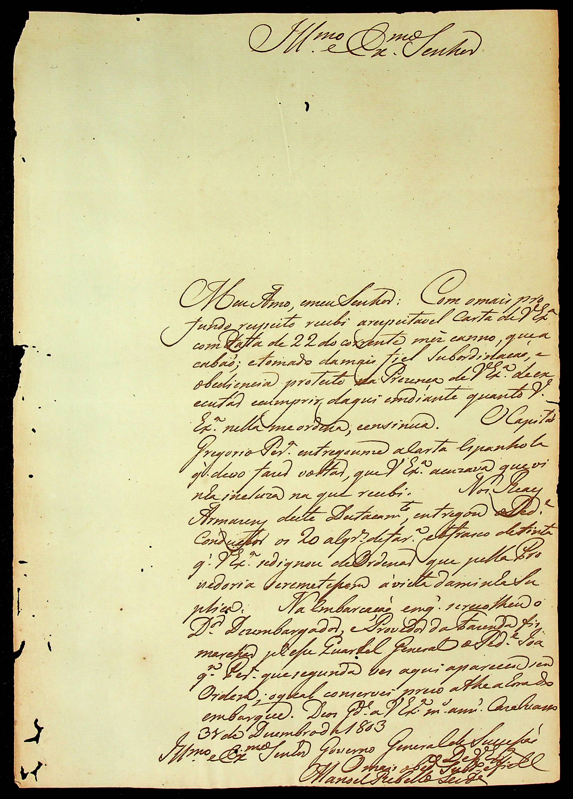 CARTA do [Tenente Comandante] Manoel [Rabelo] Leite à Segunda Junta Governativa da Capitania de Mato Grosso.
