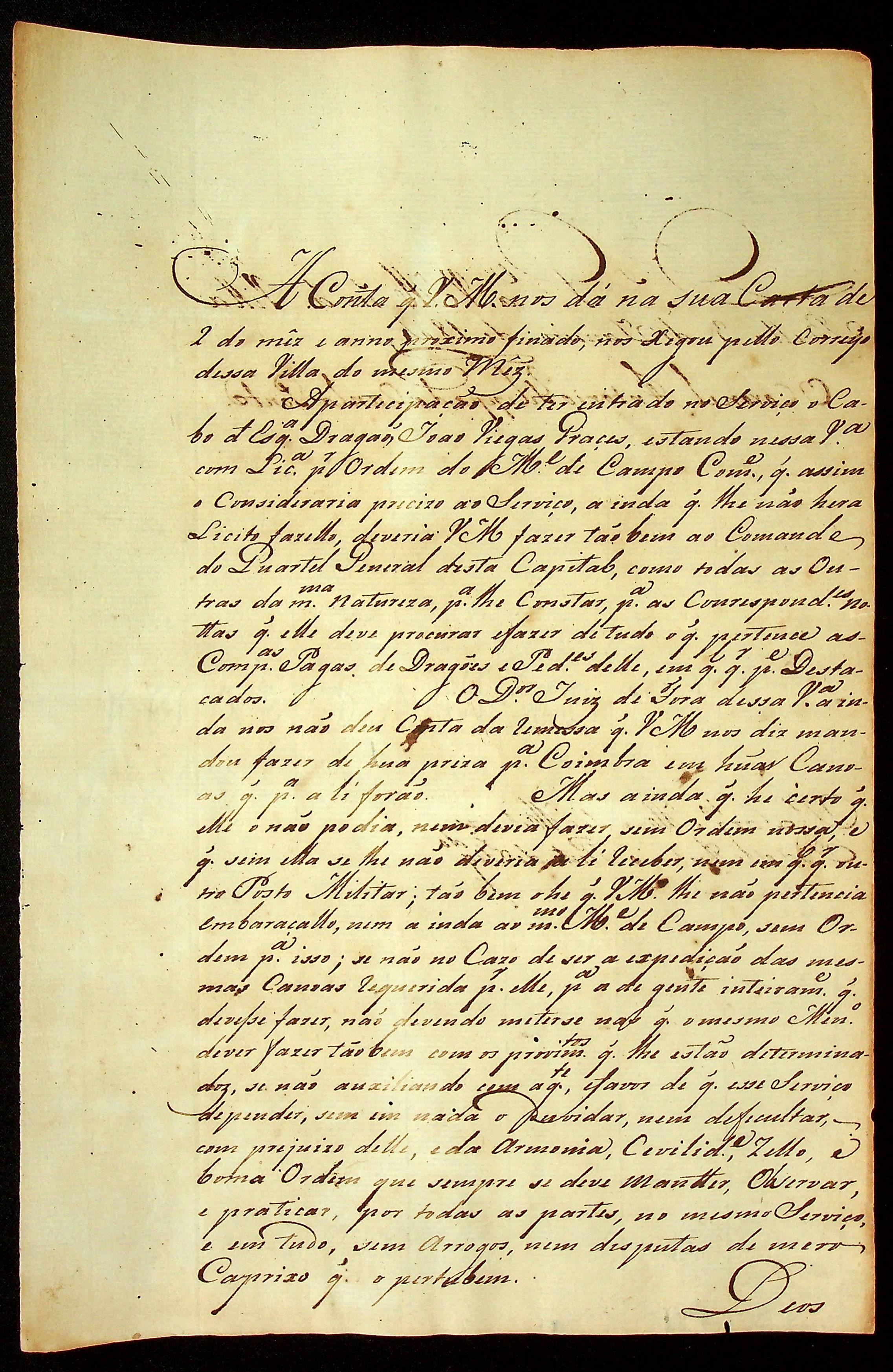 CARTA do [Coronel] Antônio Felipe da Cunha Ponte ao Sargento-mor de Milícias José Antônio Pinto de Figueiredo.