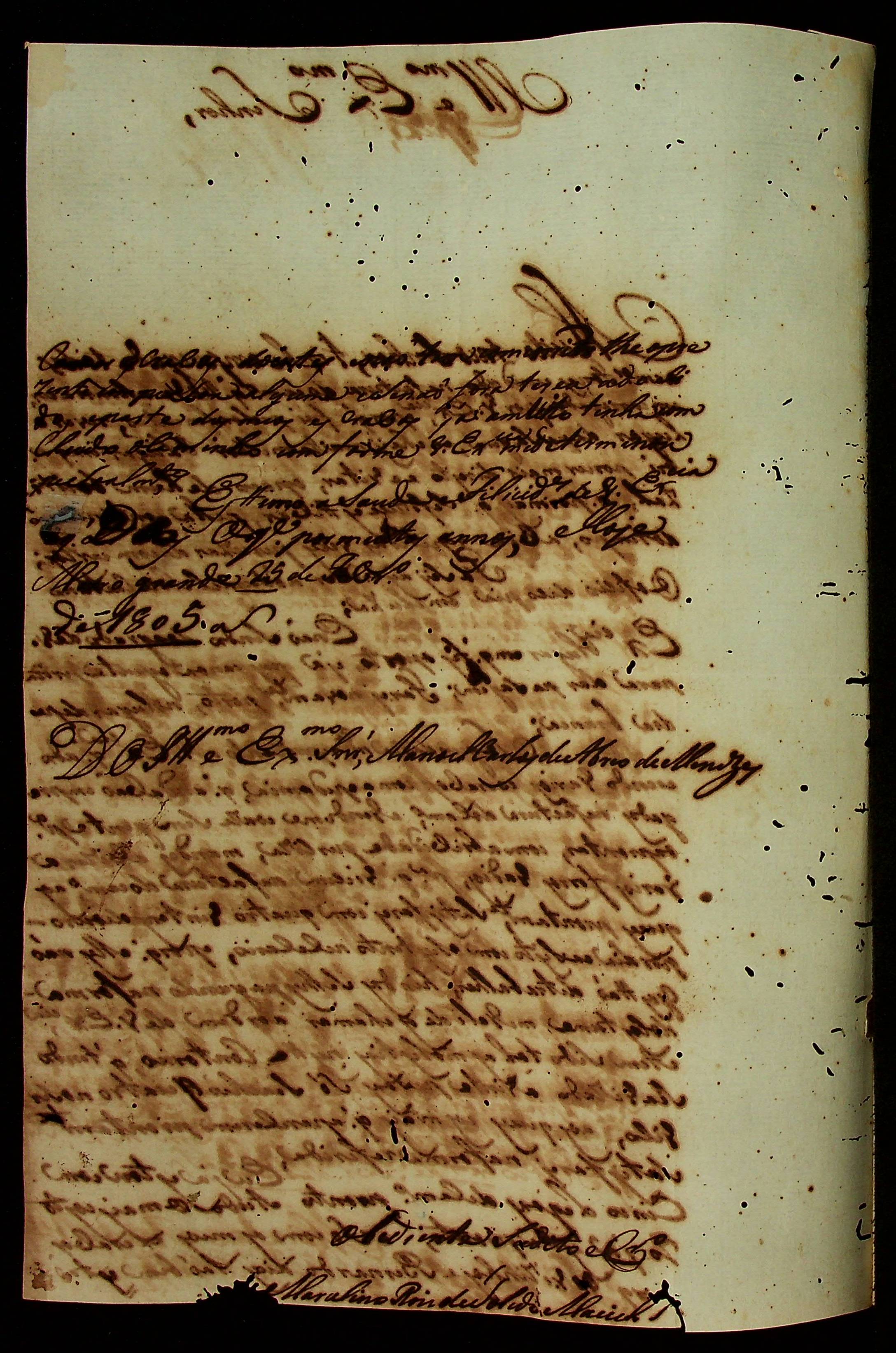 CARTA do [Tenente] Marcelino Rodrigues de Toledo Maciel ao [Governador e Capitão-General da Capitania de Mato Grosso] Manoel Carlos de Abreu e Menezes.