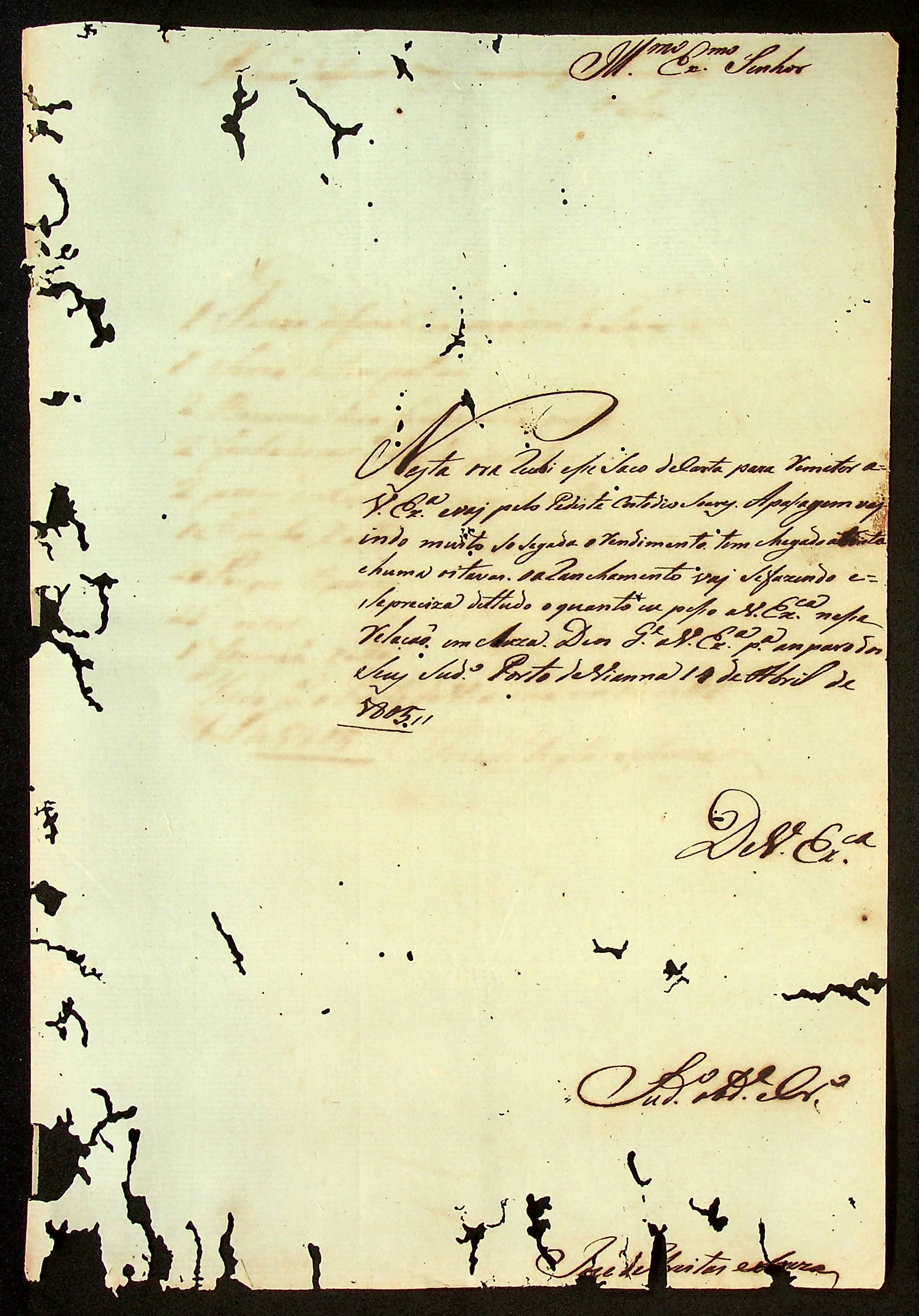 CARTA do José de Freitas Souza ao [Governador e Capitão-General da Capitania de Mato Grosso Manoel Carlos de Abreu e Menezes].