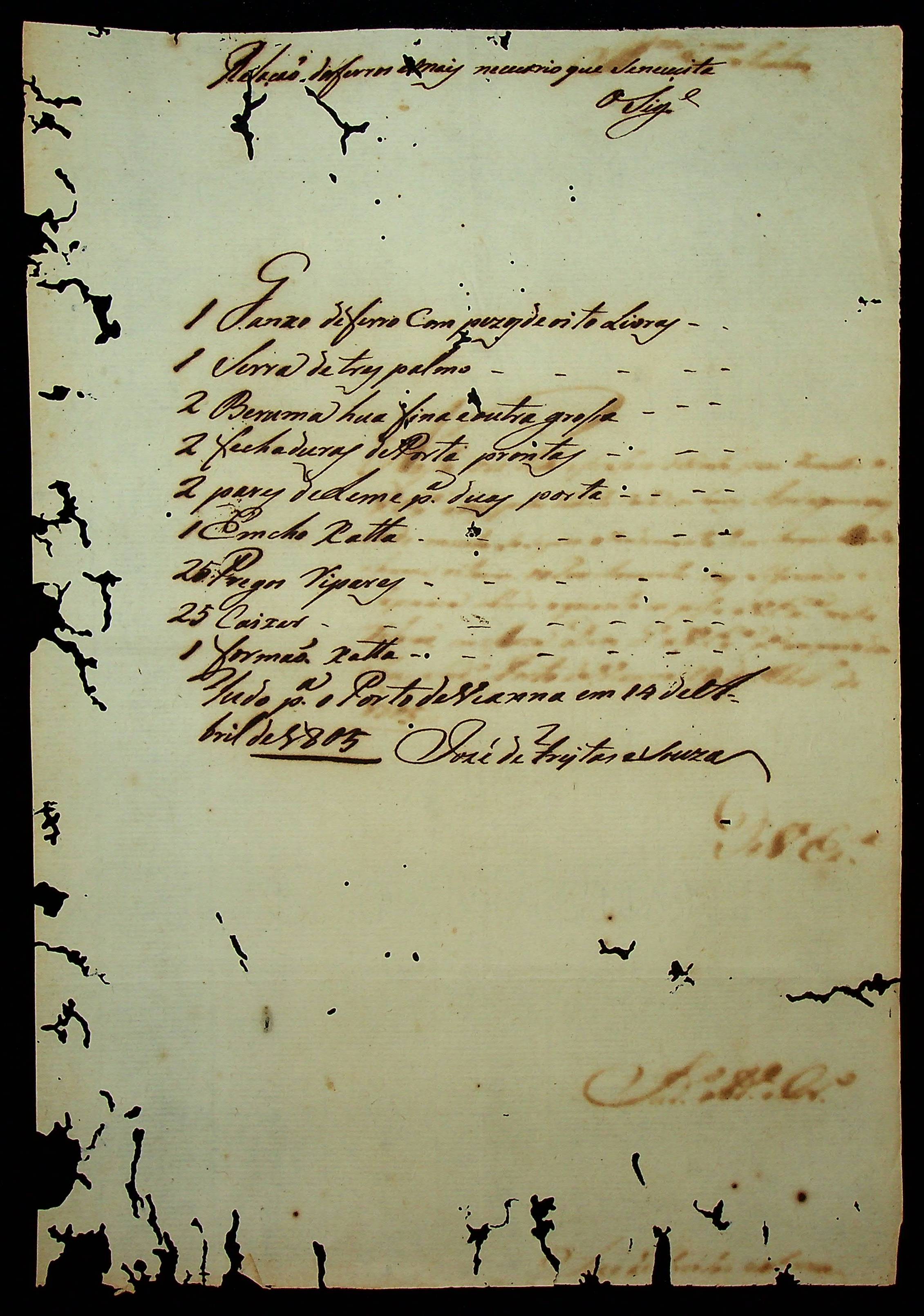 CARTA do José de Freitas Souza ao [Governador e Capitão-General da Capitania de Mato Grosso Manoel Carlos de Abreu e Menezes].