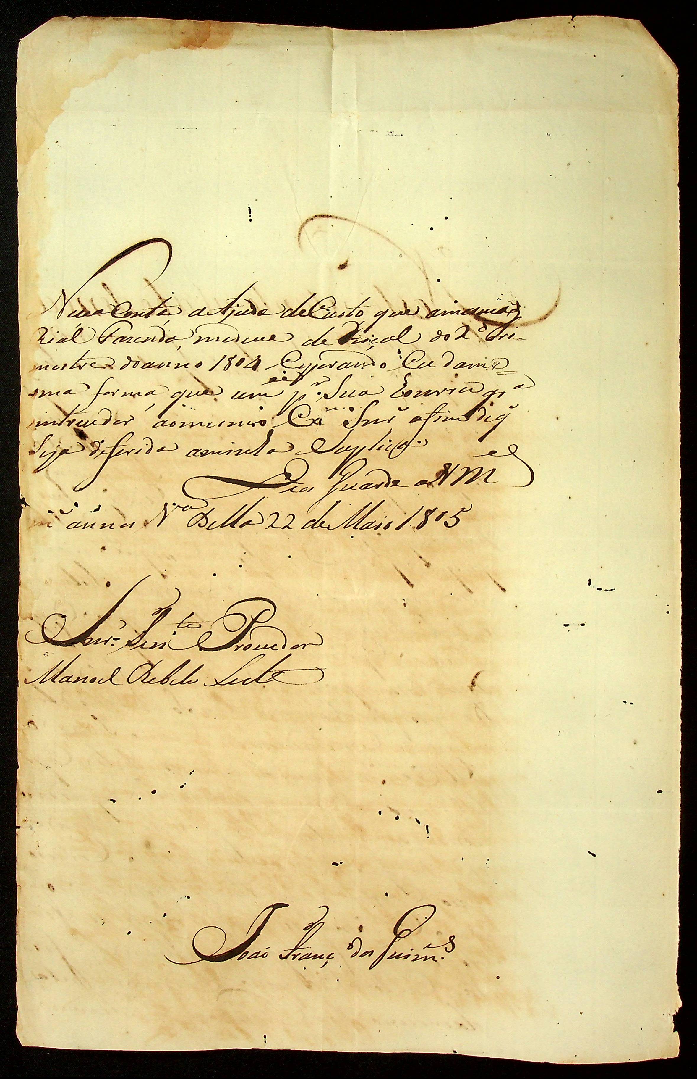 CARTA de João [França] dos Guimarães ao Tenente Provedor Manoel [Rabelo] Leite.