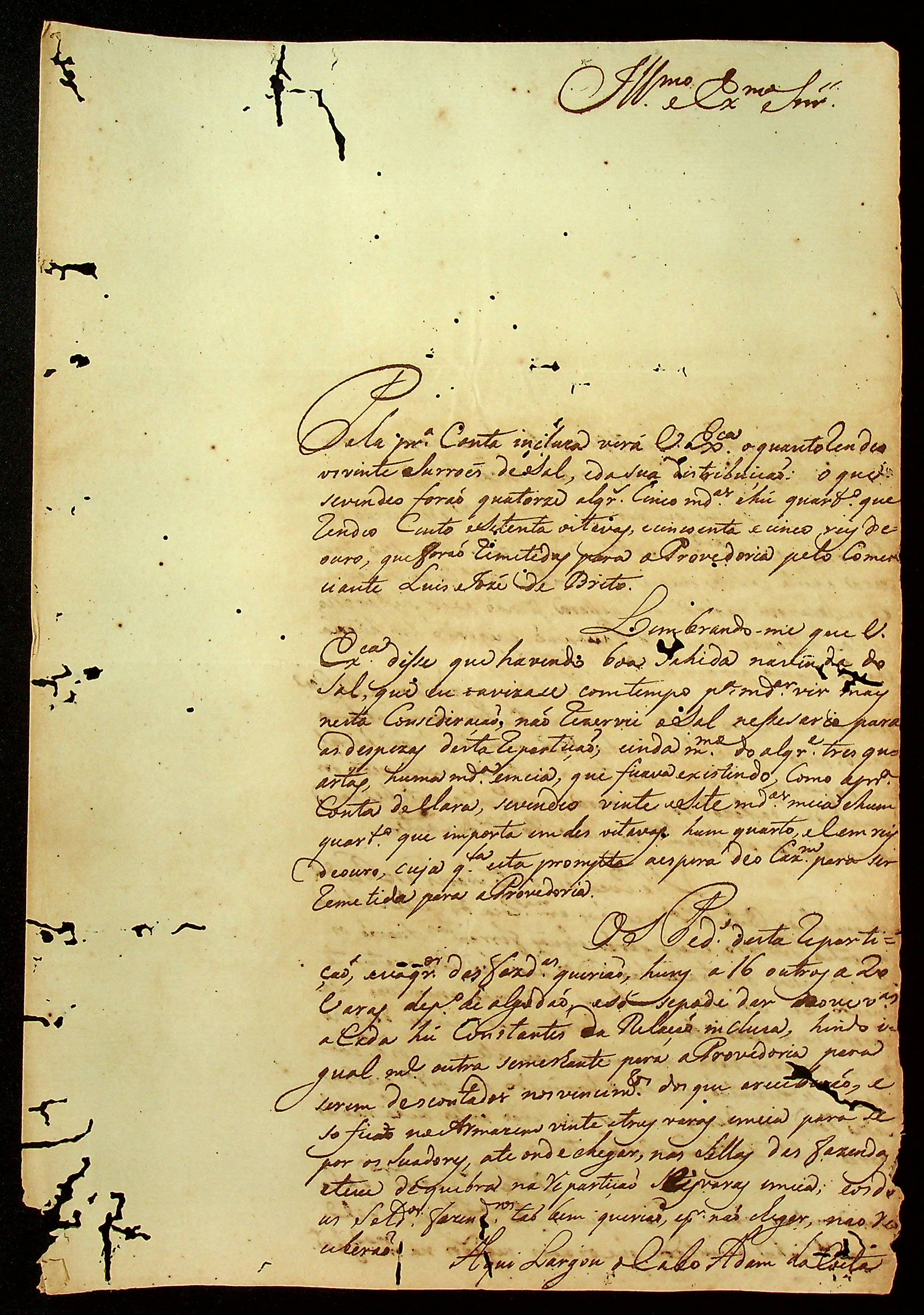 CARTA do [Tenente de Milícias de Vila Maria do Paraguai] Manoel Gonçalves Neves ao [Governador e Capitão-General da Capitania de Mato Grosso] Manoel Carlos de Abreu e Menezes.