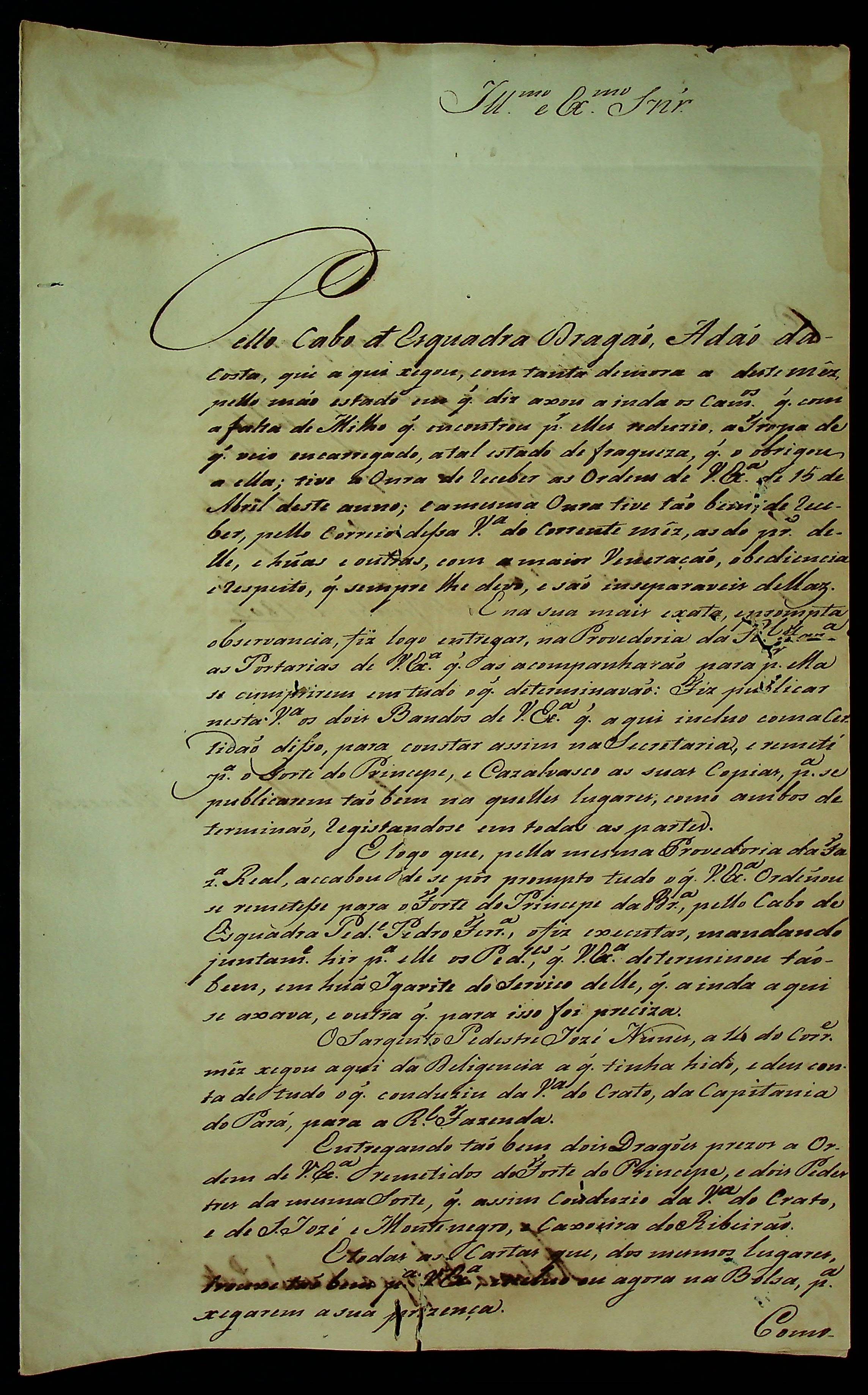 CARTA do [Coronel] Antônio Felipe Ponte ao [Governador e Capitão-General da Capitania de Mato Grosso] Manoel Carlos de Abreu e Menezes.