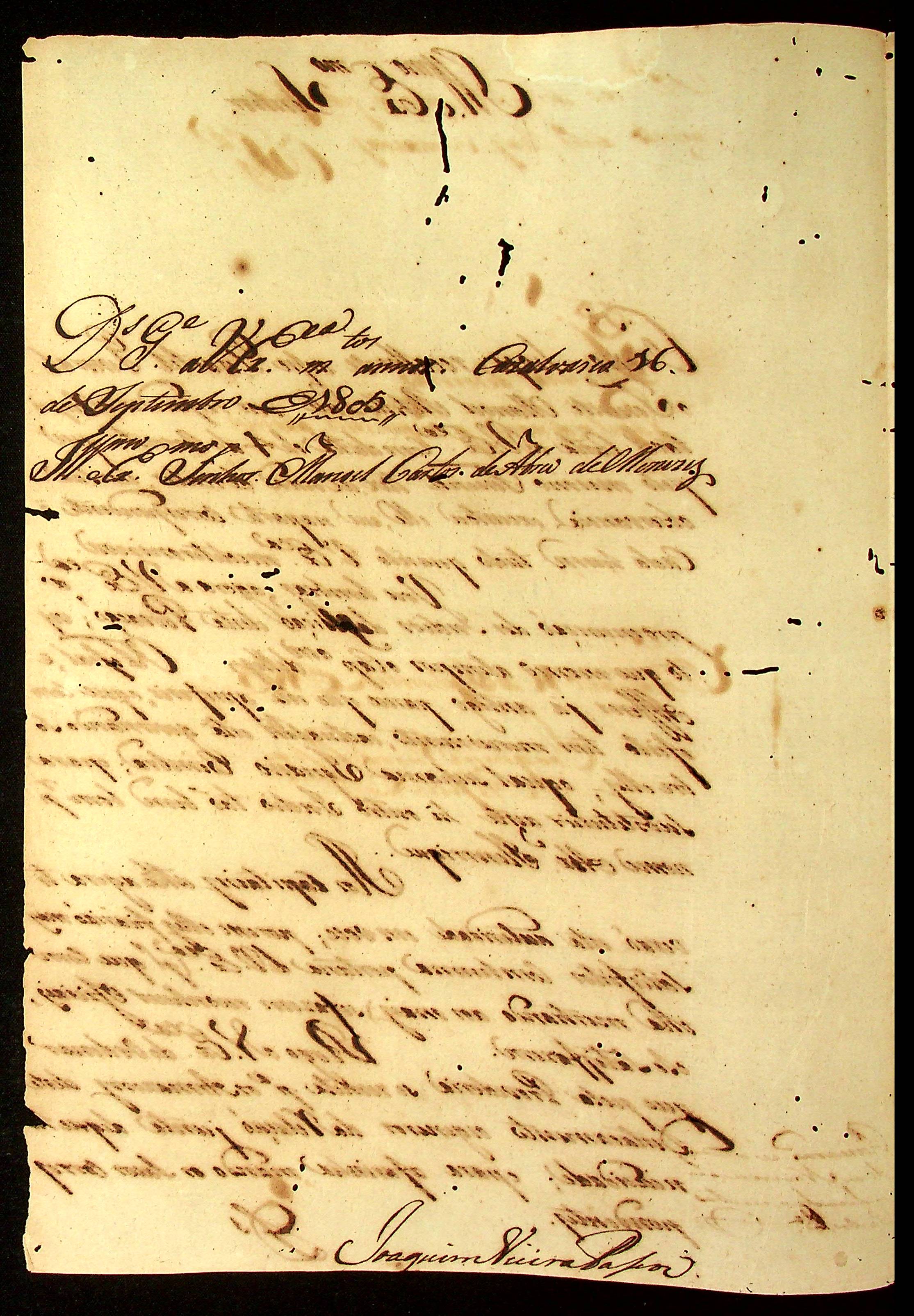 CARTA do Alferes Comandante Joaquim Vieira Passos ao [Governador e Capitão-General da Capitania de Mato Grosso] Manoel Carlos de Abreu e Menezes.