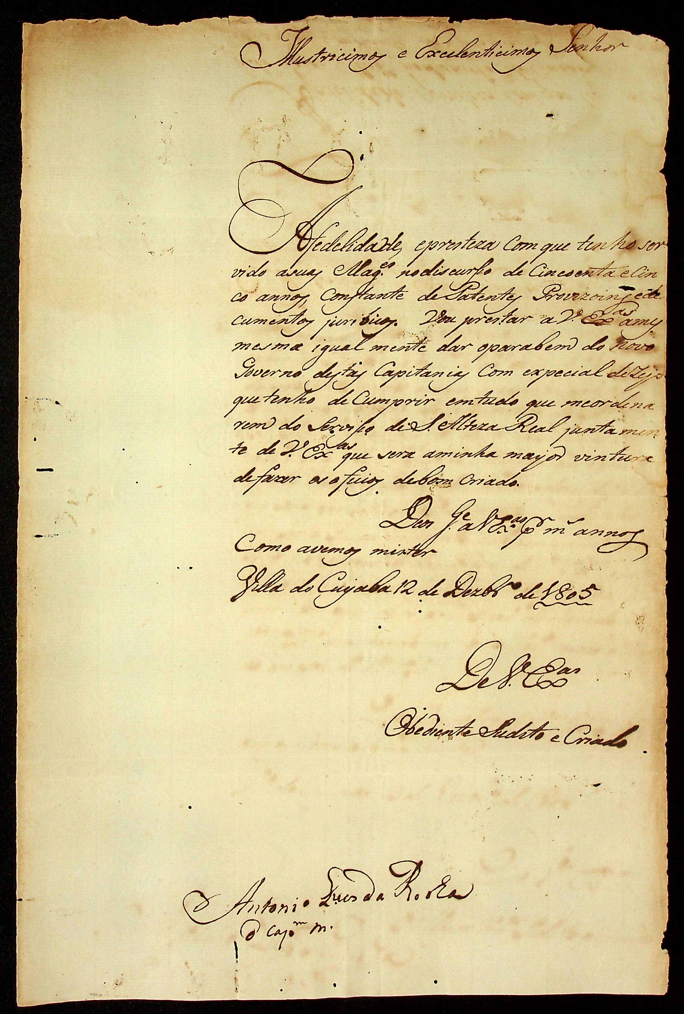 CARTA do Capitão-mor Antônio Luís da Rocha a Antônio Felipe da Cunha Ponte Sebastião Pita de Castro e José da Costa Lima.