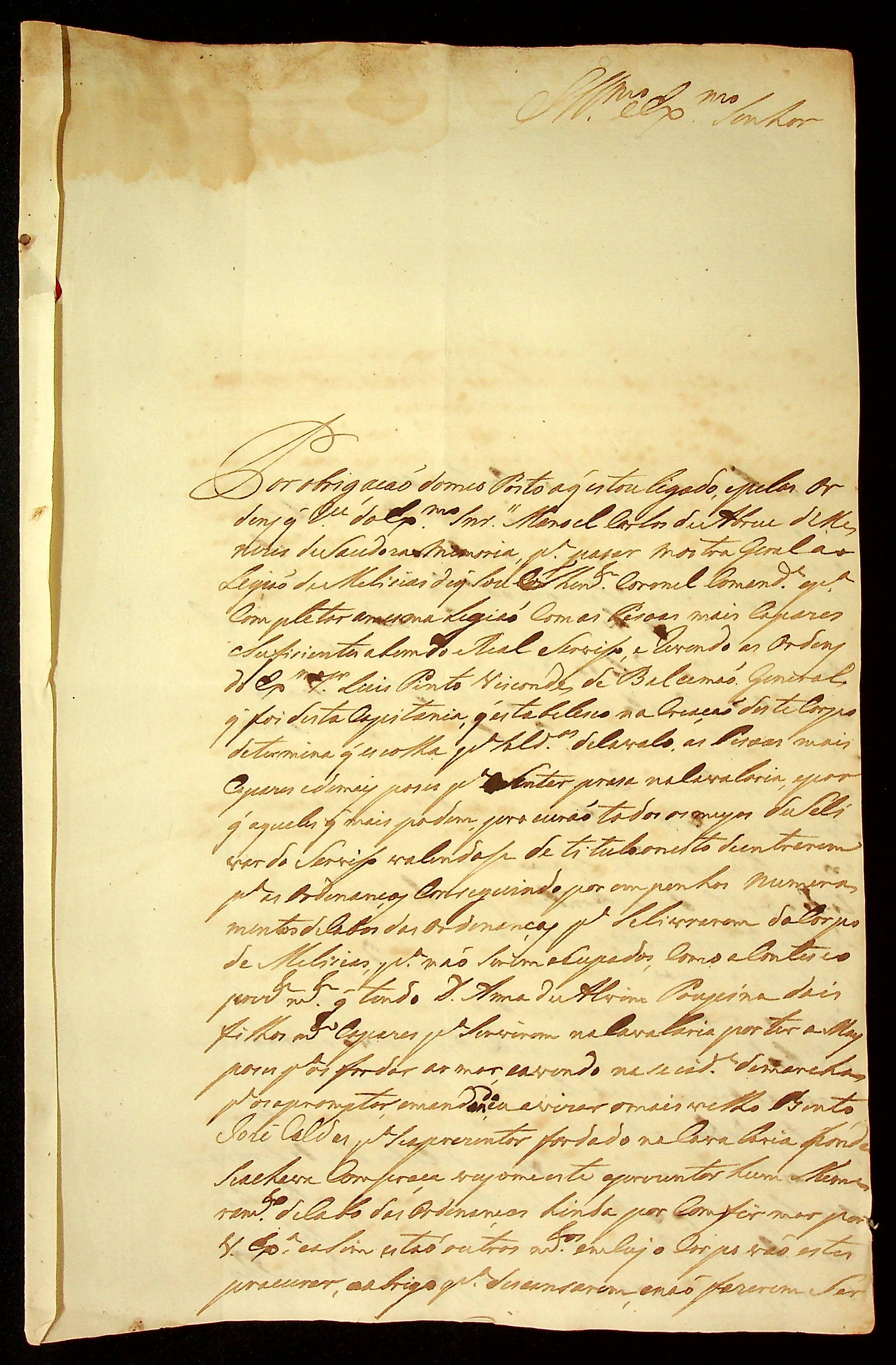 CARTA do [Tenente-Coronel] Gabriel da Fonseca Souza à [Terceira Junta Governativa da Capitania de Mato Grosso].