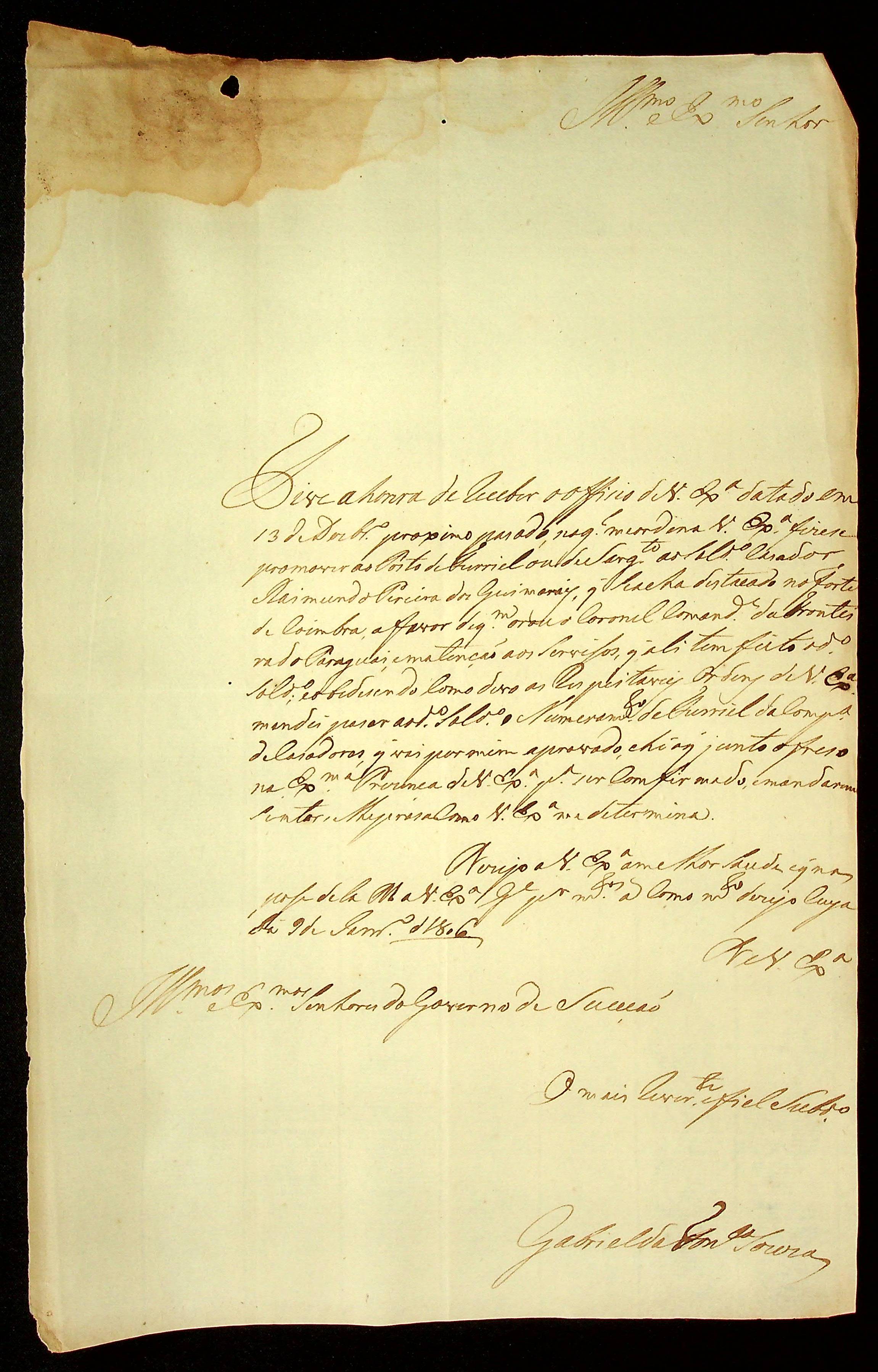 CARTA do Tenente-Coronel Gabriel da Fonseca Souza à [Terceira Junta Governativa da Capitania de Mato Grosso].