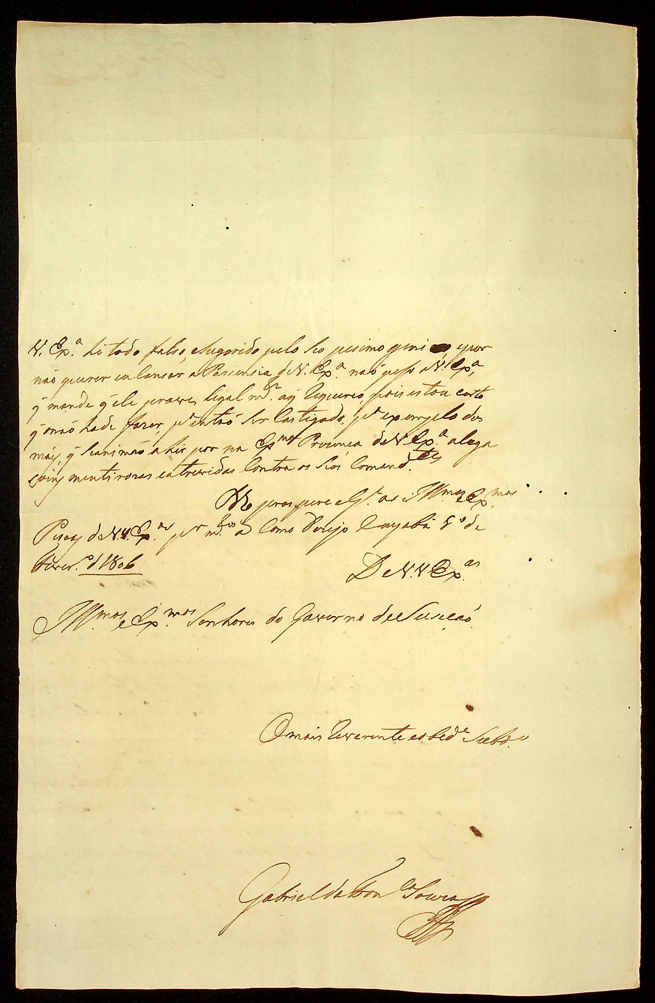 CARTA do Tenente-Coronel Gabriel da Fonseca Souza à [Terceira Junta Governativa da Capitania de Mato Grosso].