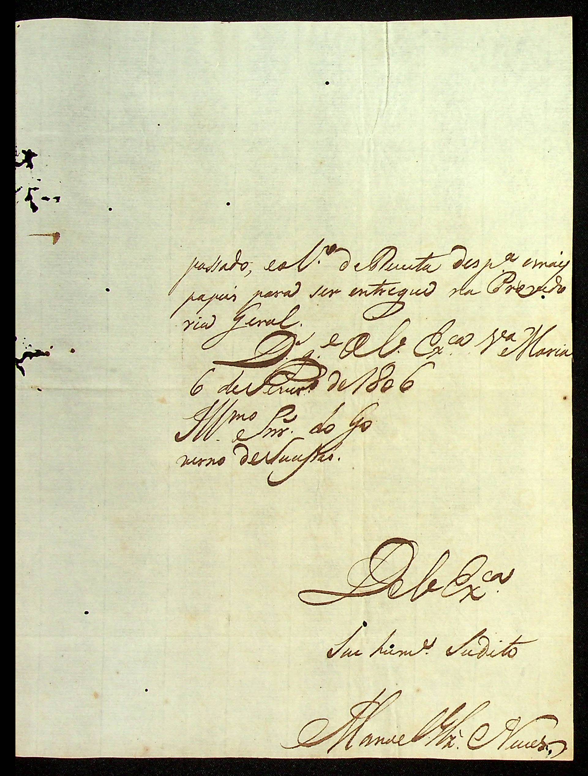 CARTA do Tenente da Nova Companhia de Milícias Manoel Gonçalves Neves à [Terceira Junta Governativa da Capitania de Mato Grosso].