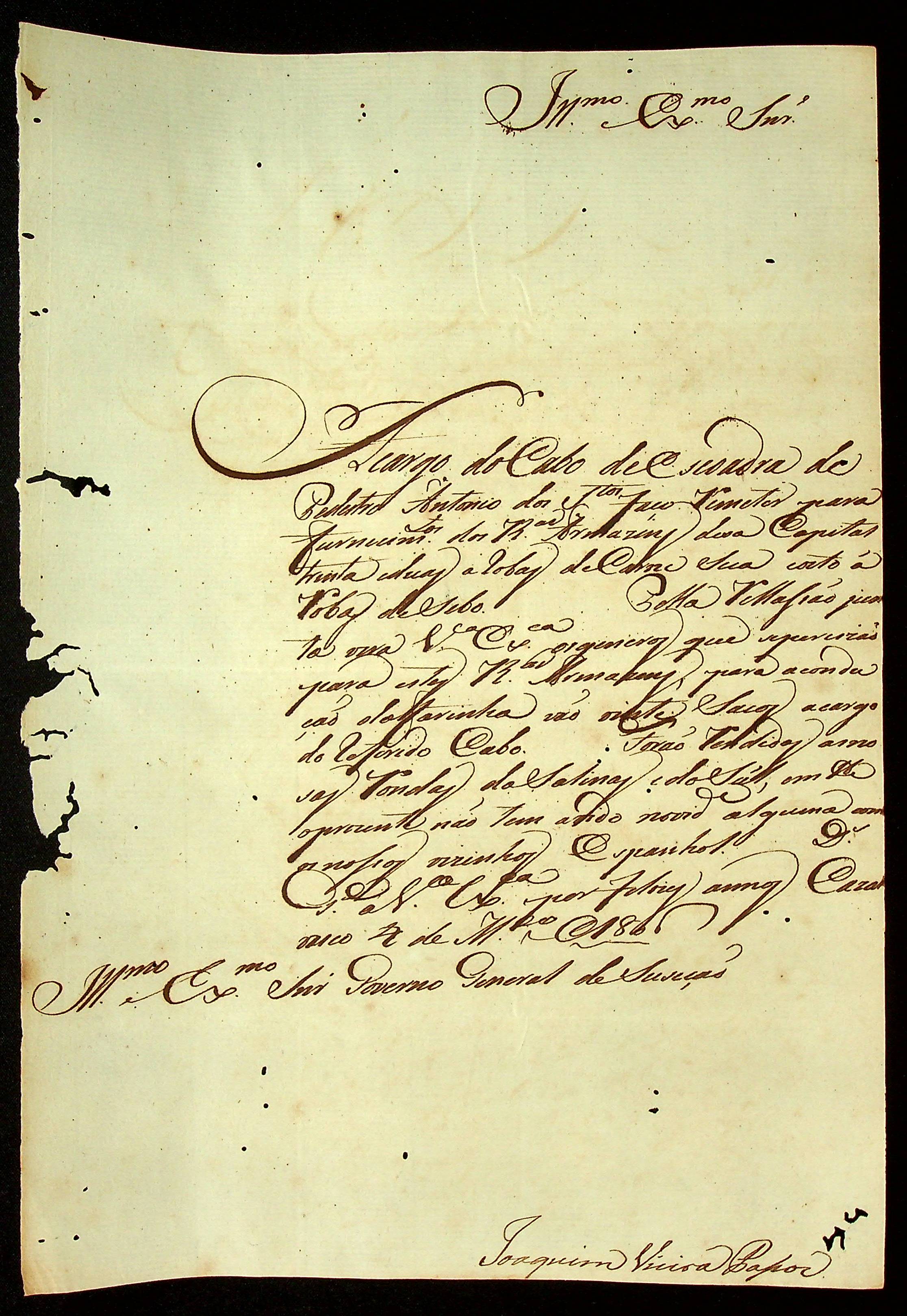 CARTA [Alferes e Comandante] Joaquim Vieira Passos à [Terceira Junta Governativa da Capitania de Mato Grosso].