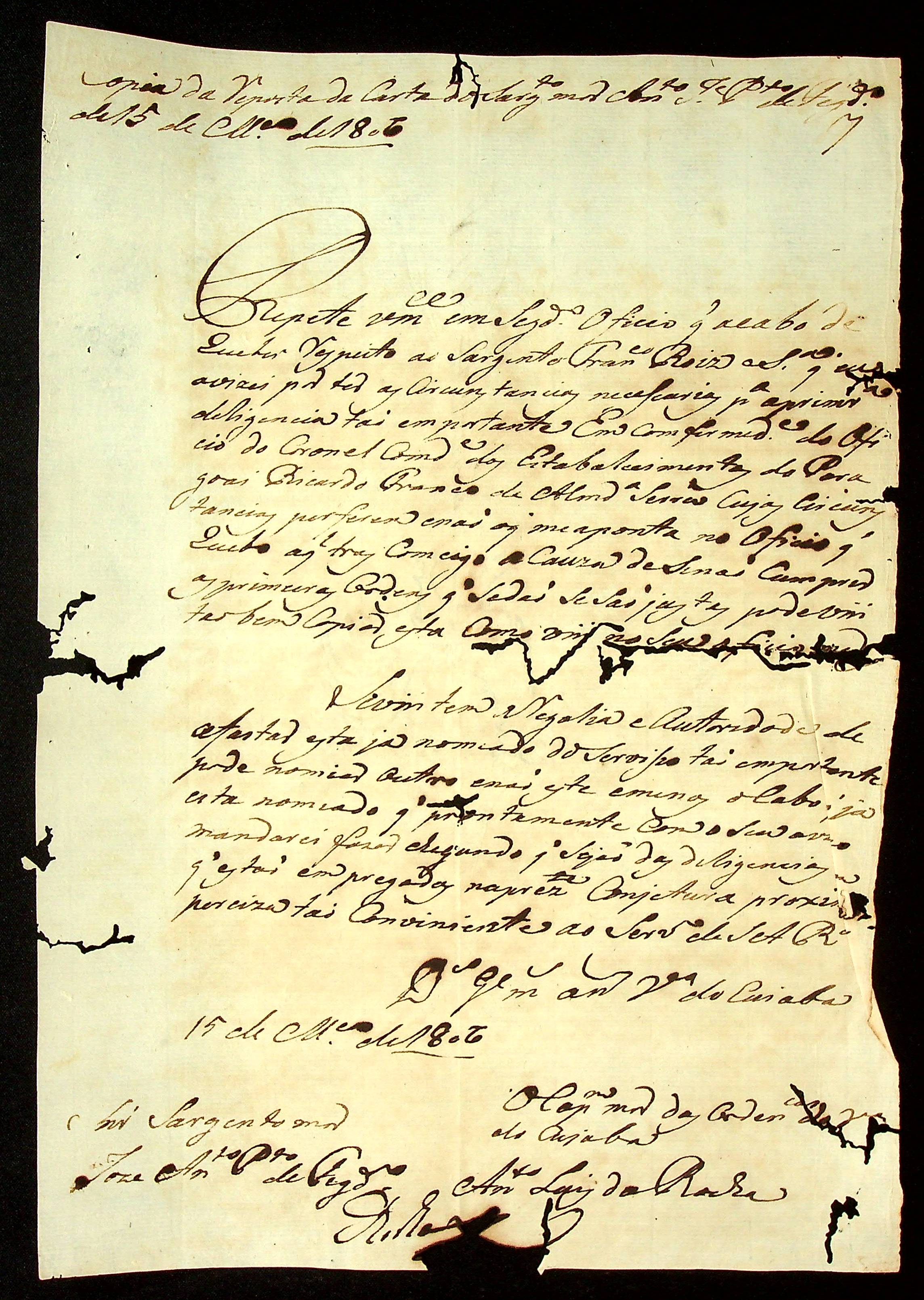 CARTA (cópia) do Sargento-mor de Milícias José Antônio Pinto de Figueiredo ao Capitão-mor das Ordenanças Antônio Luiz da Rocha.