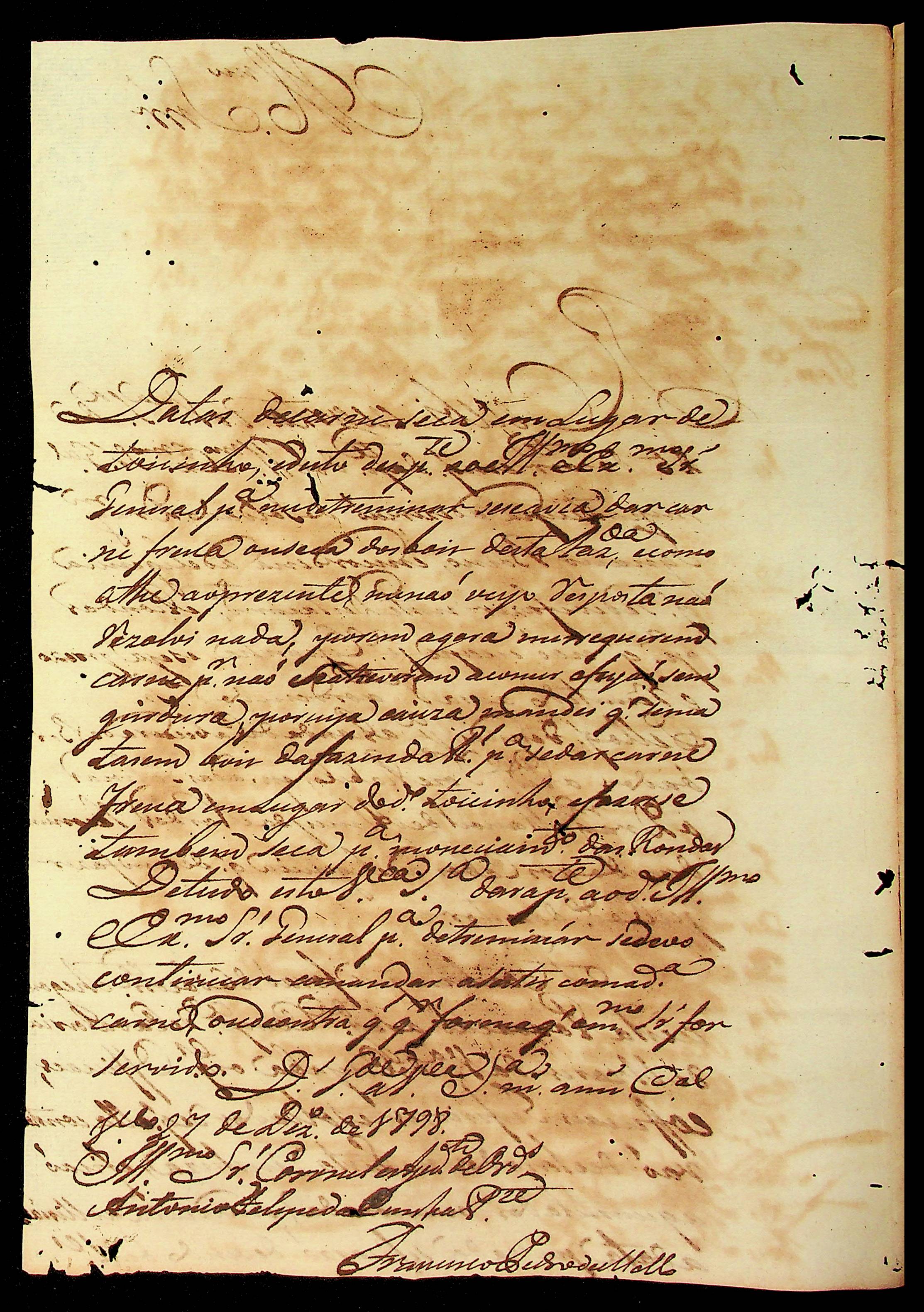 CARTA do Tenente-Coronel Gabriel da Fonseca Souza à [Terceira Junta Governativa da Capitania de Mato Grosso].