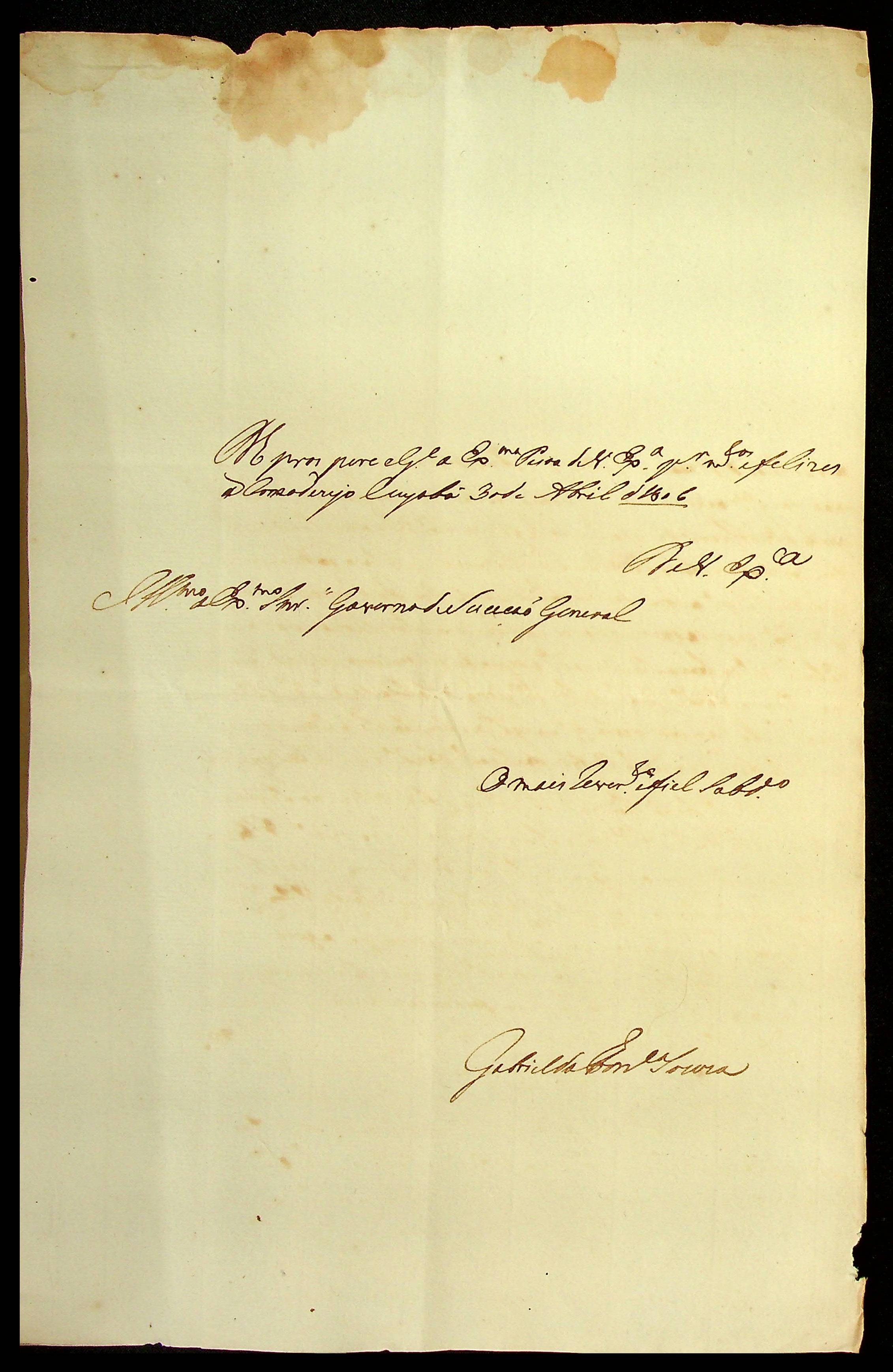 CARTA do Tenente-Coronel Gabriel da Fonseca Souza à [Terceira Junta Governativa da Capitania de Mato Grosso].