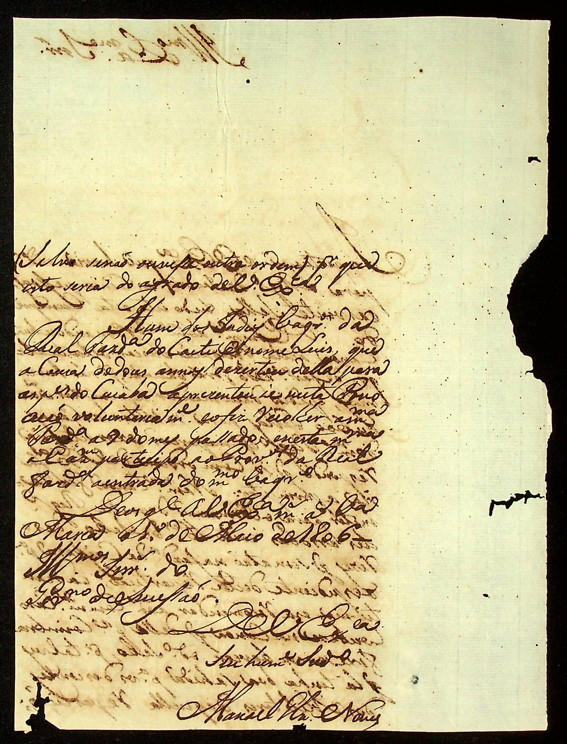 CARTA do Tenente Comandante Manoel Gonçalves Neves à [Terceira Junta Governativa da Capitania de Mato Grosso].