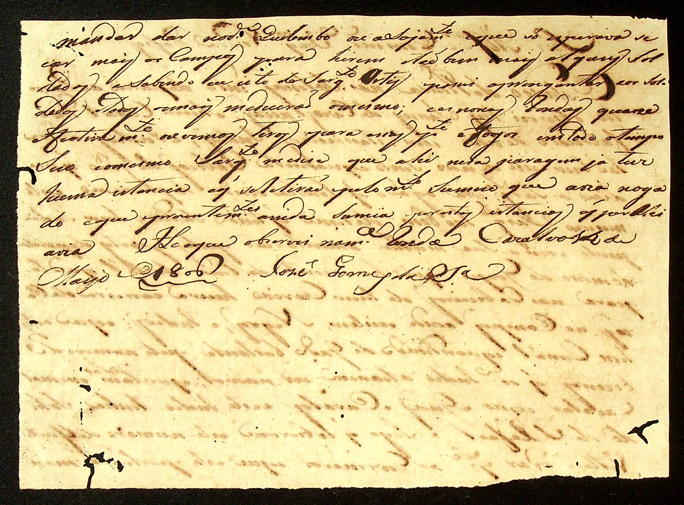 CARTA do Alferes Comandante Joaquim Vieira Passos à [Terceira Junta Governativa da Capitania de Mato Grosso].
