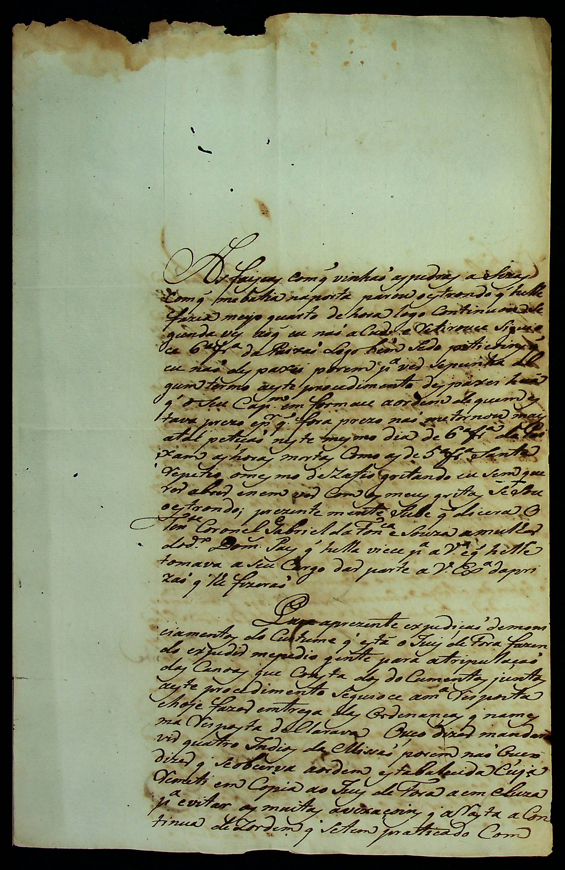 CARTA do Capitão-mor das Ordenanças Antônio Luiz da Rocha à [Terceira Junta Governativa da Capitania de Mato Grosso].