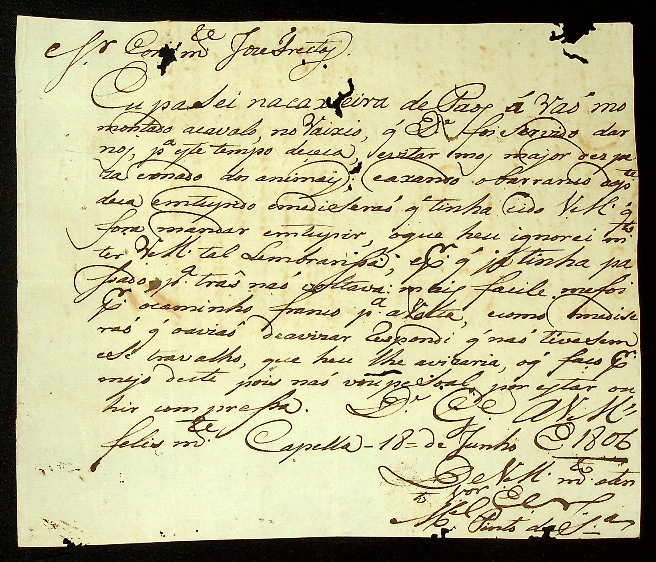 CARTA de Manoel Pinto de Souza ao Comandante José Freitas.