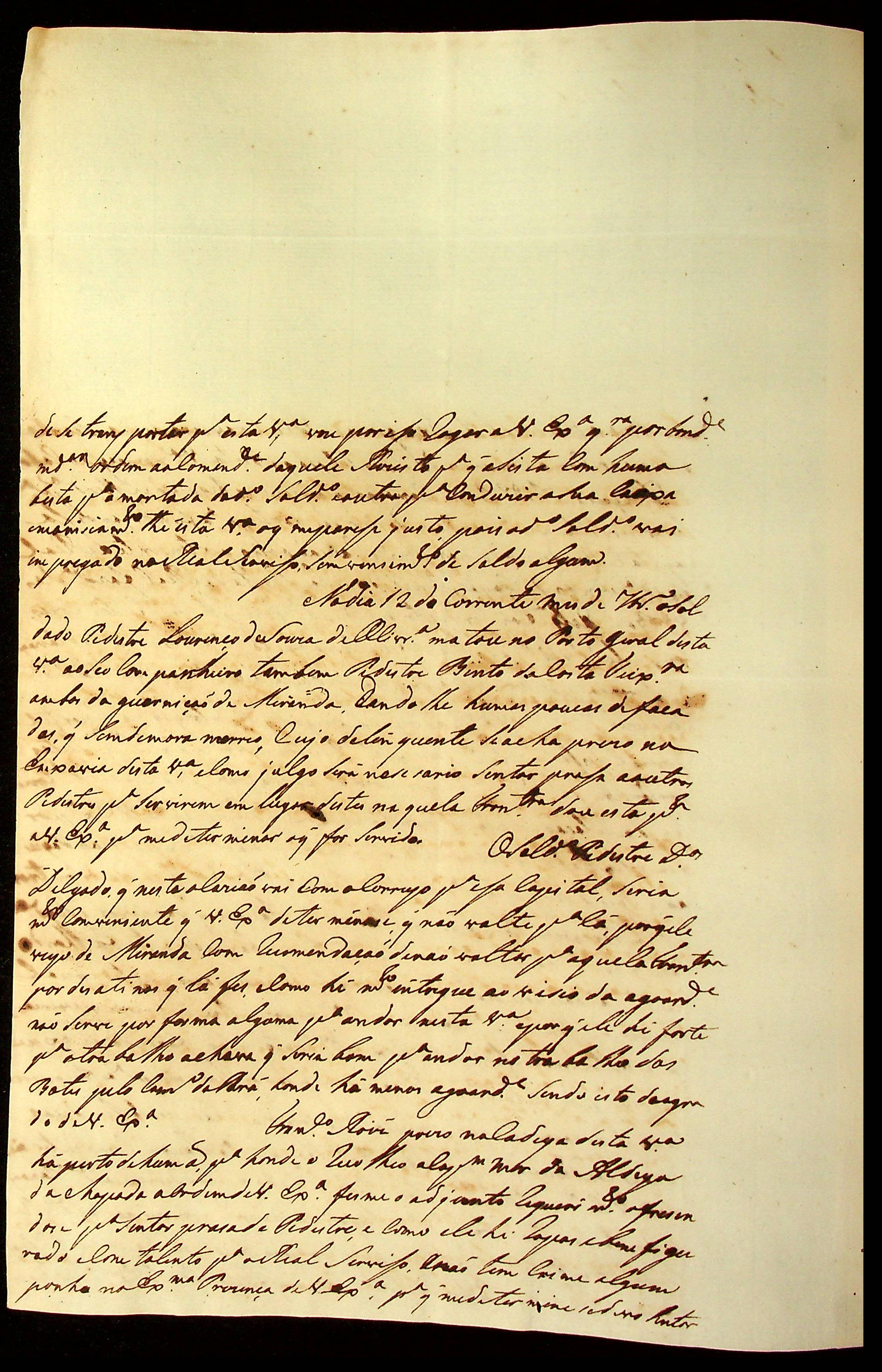 CARTA do [Tenente-Coronel da Legião de Milícias da Vila do Cuiabá] Gabriel da Fonseca Souza à [Terceira Junta Governativa da Capitania de Mato Grosso].