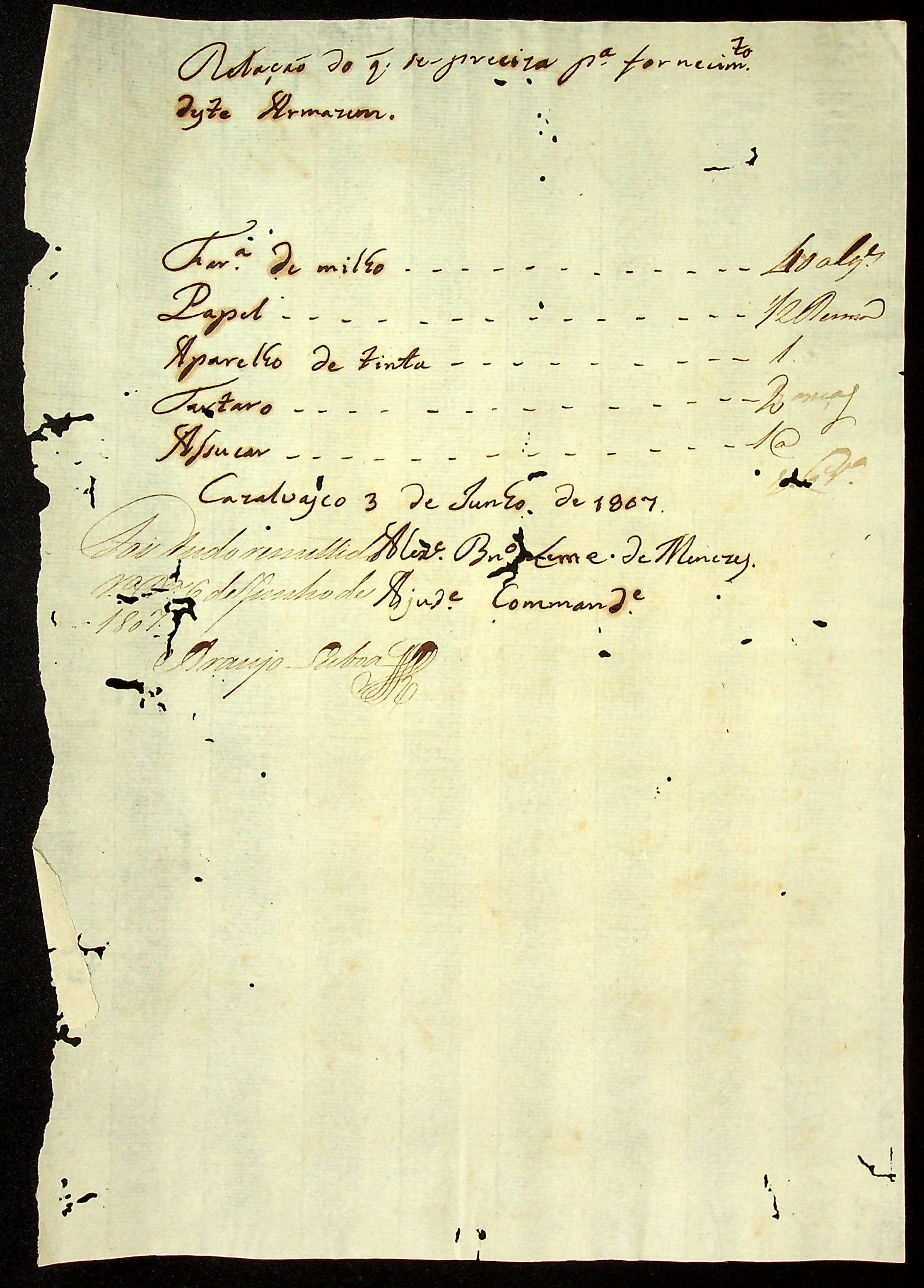 CARTA do Alexandre Brito Leme de Meneses à [Terceira Junta Governativa da Capitania de Mato Grosso].