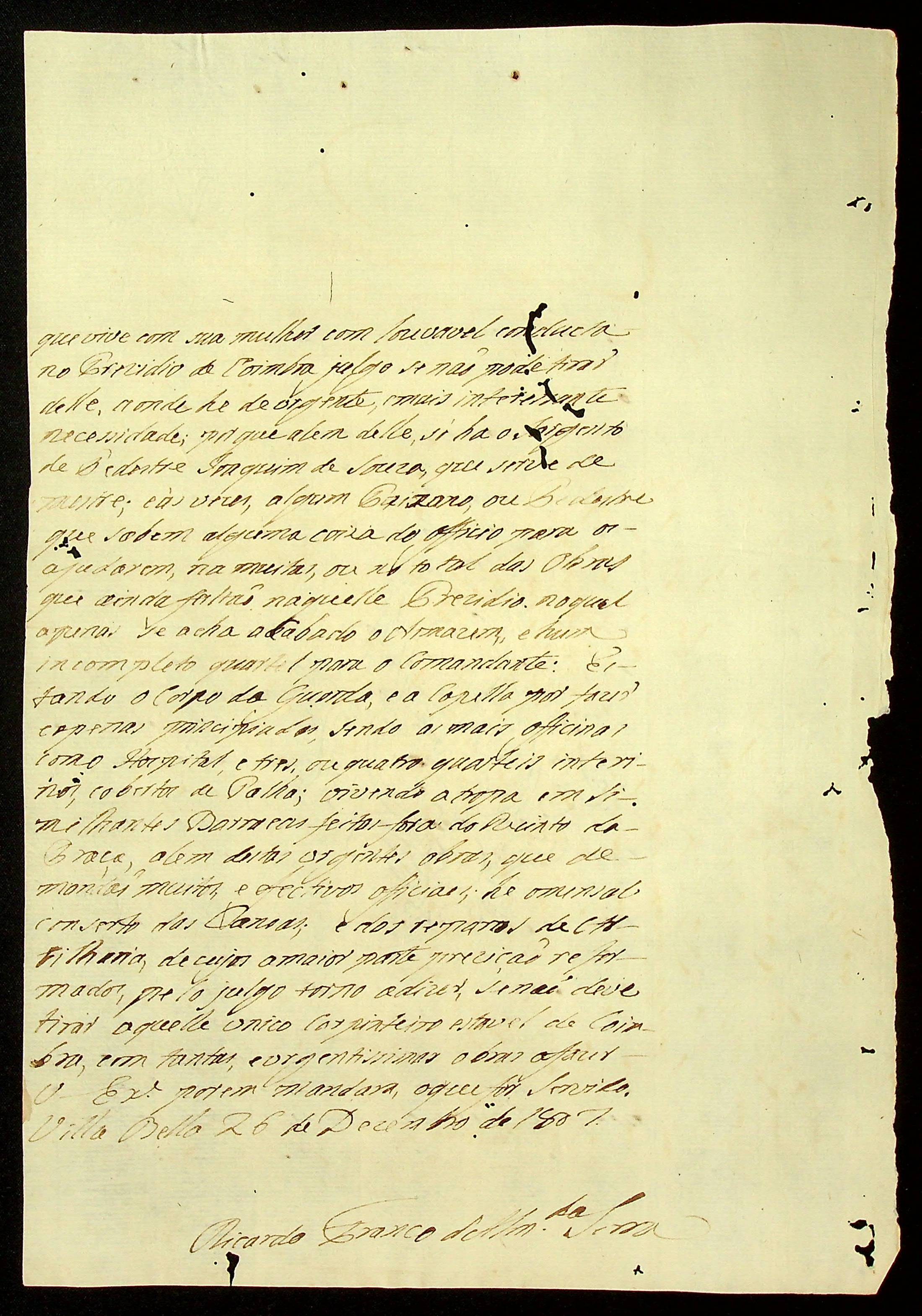CARTA DO [Coronel] Ricardo Franco de Almeida Serra ao [Governador e Capitão-General da Capitania de Mato Grosso] João Carlos Augusto d’Oeynhausen e Gravenberg.