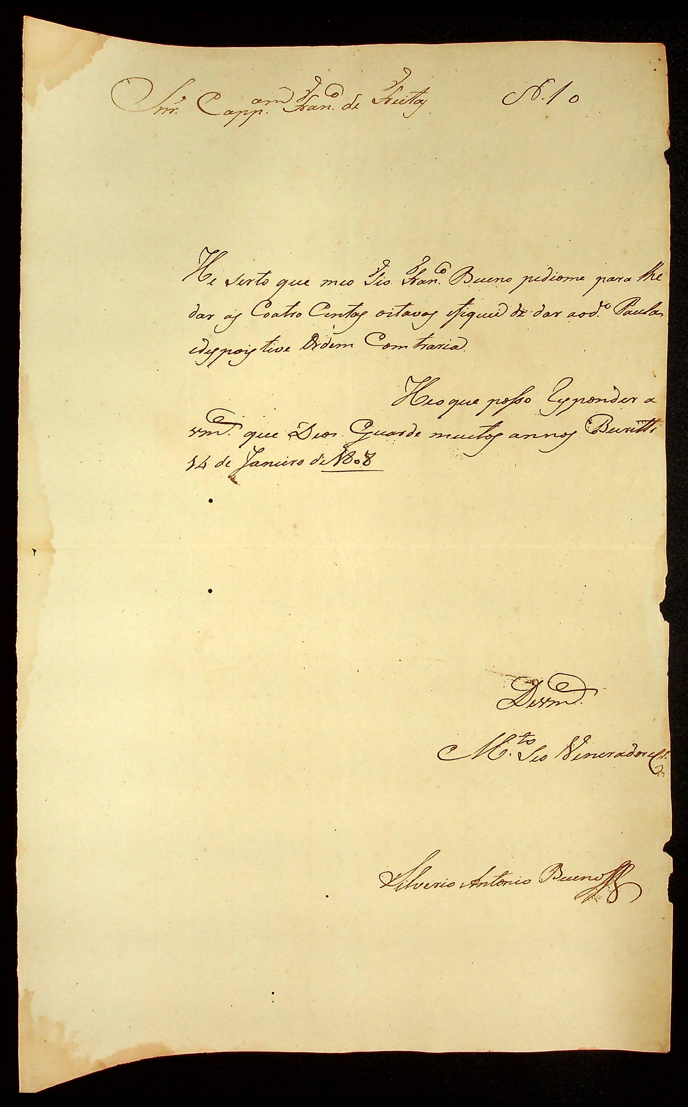 CARTA do Capitão Francisco de Freitas Dantas ao [Governador e Capitão-General da Capitania de Mato Grosso João Carlos Augusto d’Oeynhausen e Gravenberg].