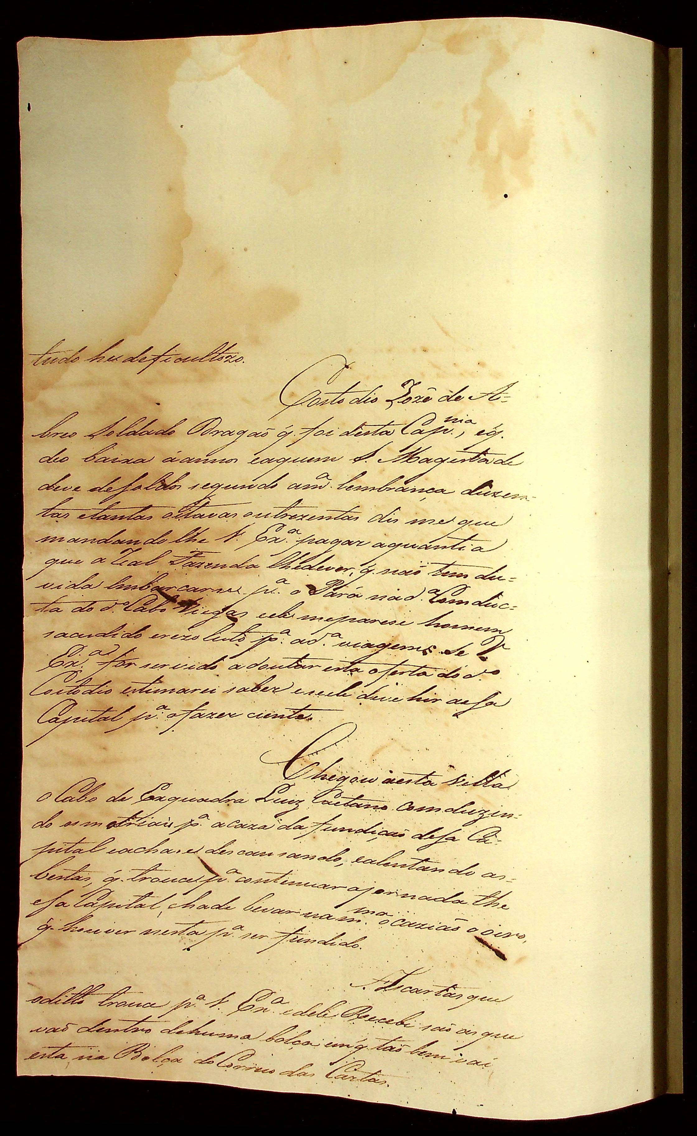 CARTA do [Coronel] Gabriel de Fonseca Souza ao [Governador e Capitão-General da Capitania de Mato Grosso] João Carlos Augusto d’Oeynhausen e Gravenberg.