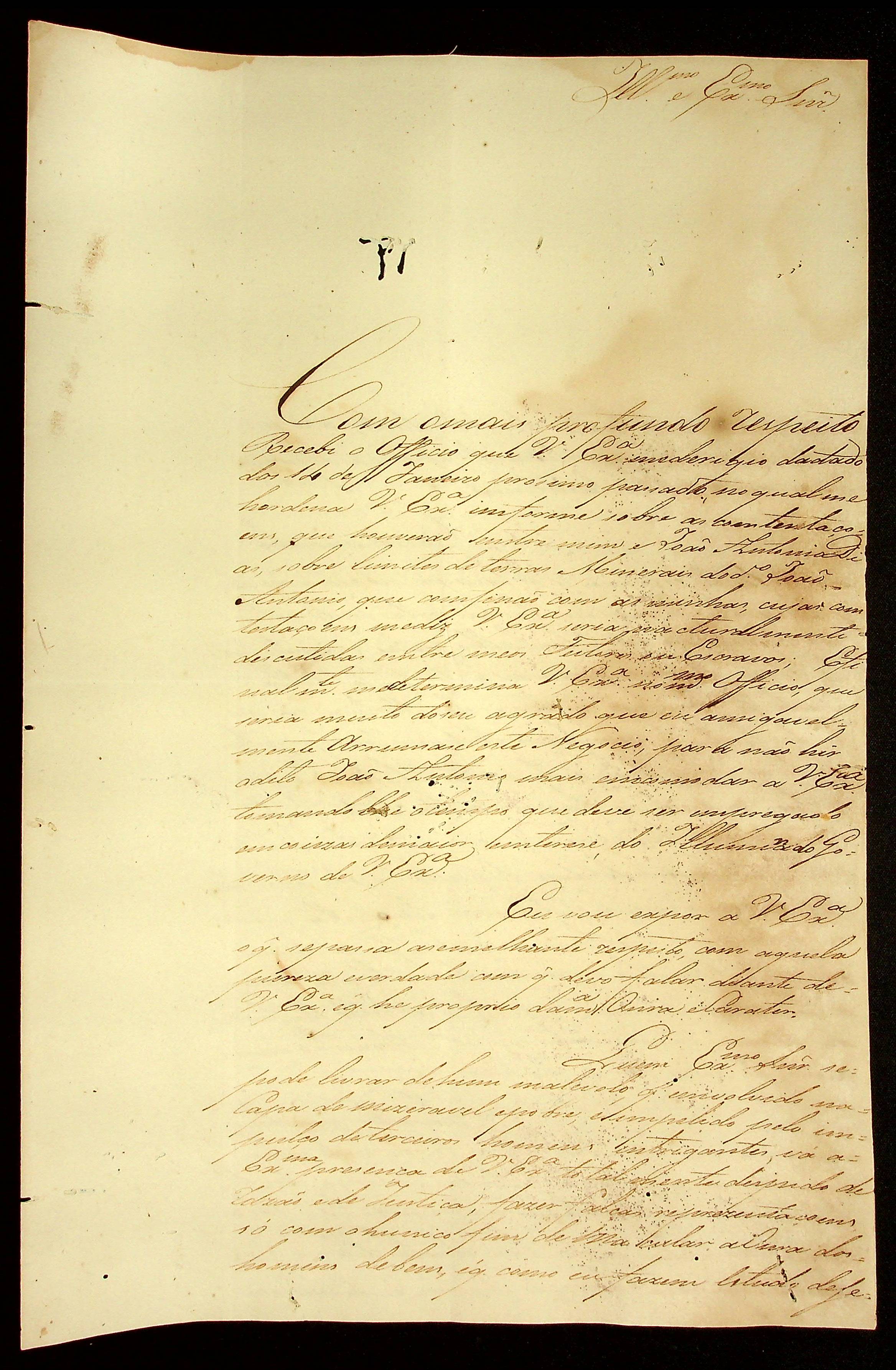 CARTA do [Tenente-Coronel da Legião de Milícias] Gabriel de Fonseca Souza ao [Governador e Capitão-General da Capitania de Mato Grosso] João Carlos Augusto d’Oeynhausen e Gravenberg.