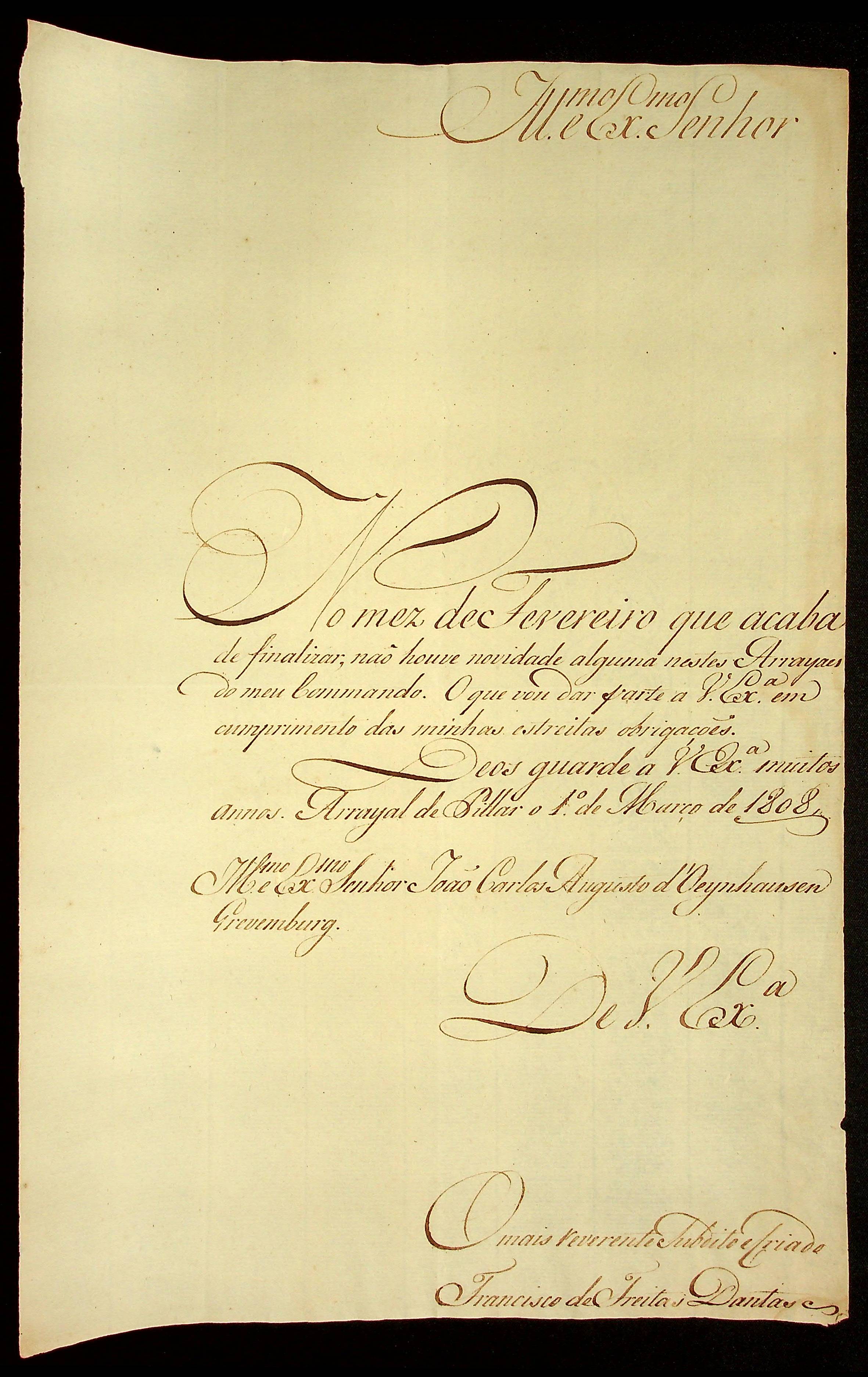 CARTA do [Capitão] Francisco Freitas Dantas ao [Governador e Capitão-General da Capitania de Mato Grosso] João Carlos Augusto d’Oeynhausen e Gravenberg.