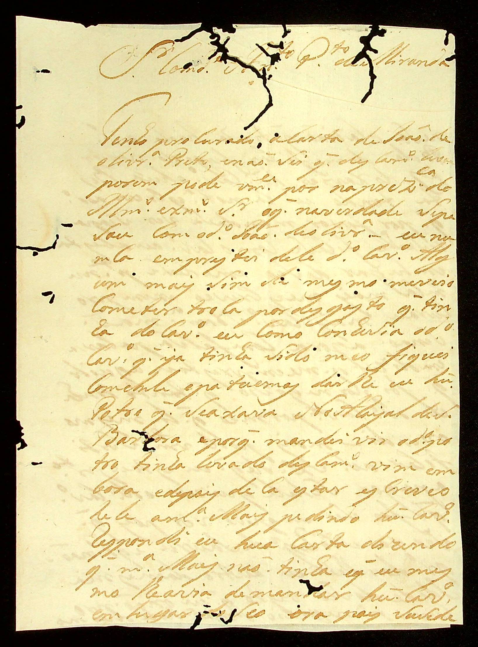CARTA do [Anspeçada e Comandante] Antônio Pinto de Miranda ao [Governador e Capitão-General da Capitania de Mato Grosso João Carlos Augusto d’Oeynhausen e Gravenberg].