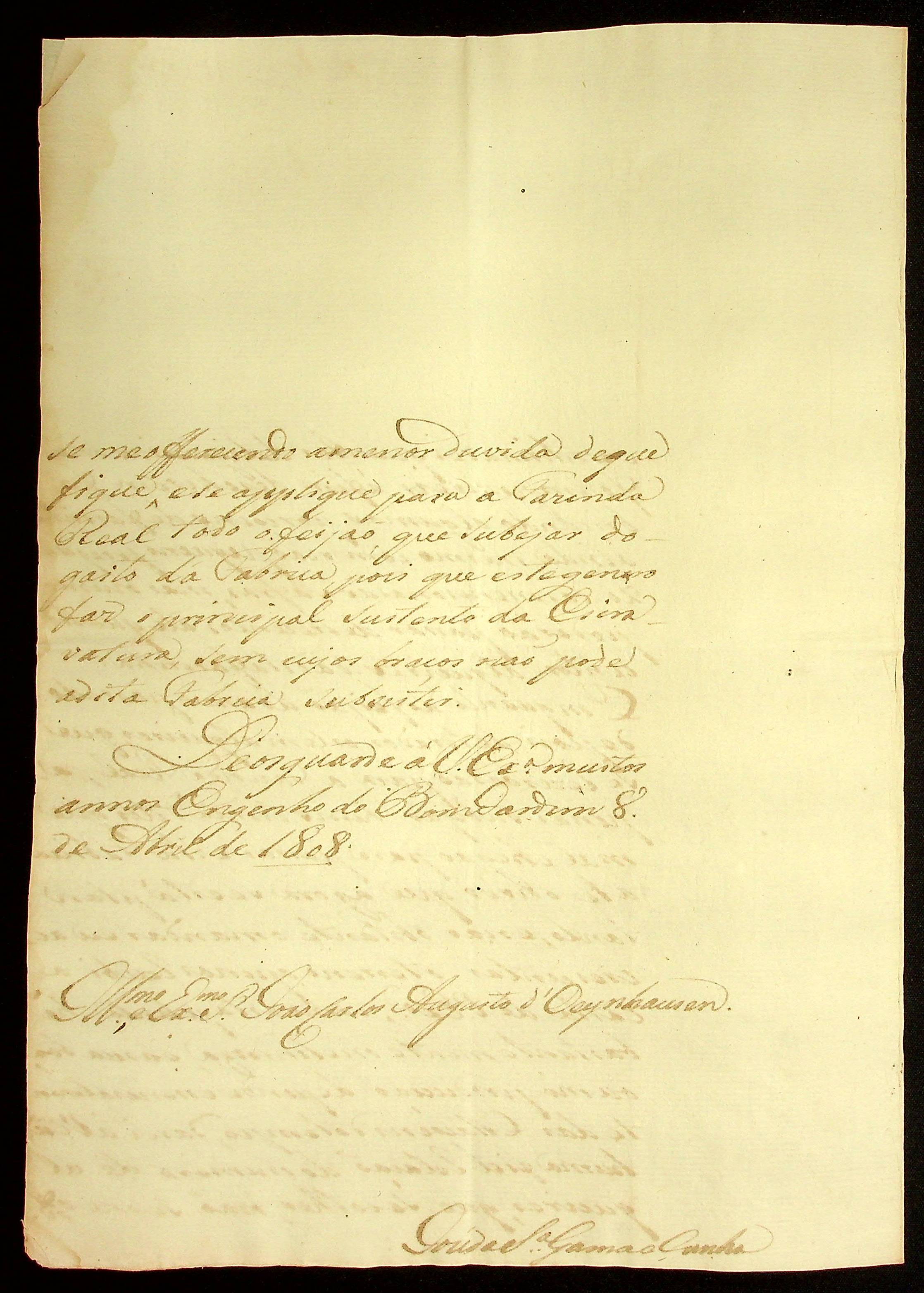 CARTA do [Capitão] José Silva Gama e Cunha ao [Governador e Capitão-General da Capitania de Mato Grosso] João Carlos Augusto d’Oeynhausen e Gravenberg.