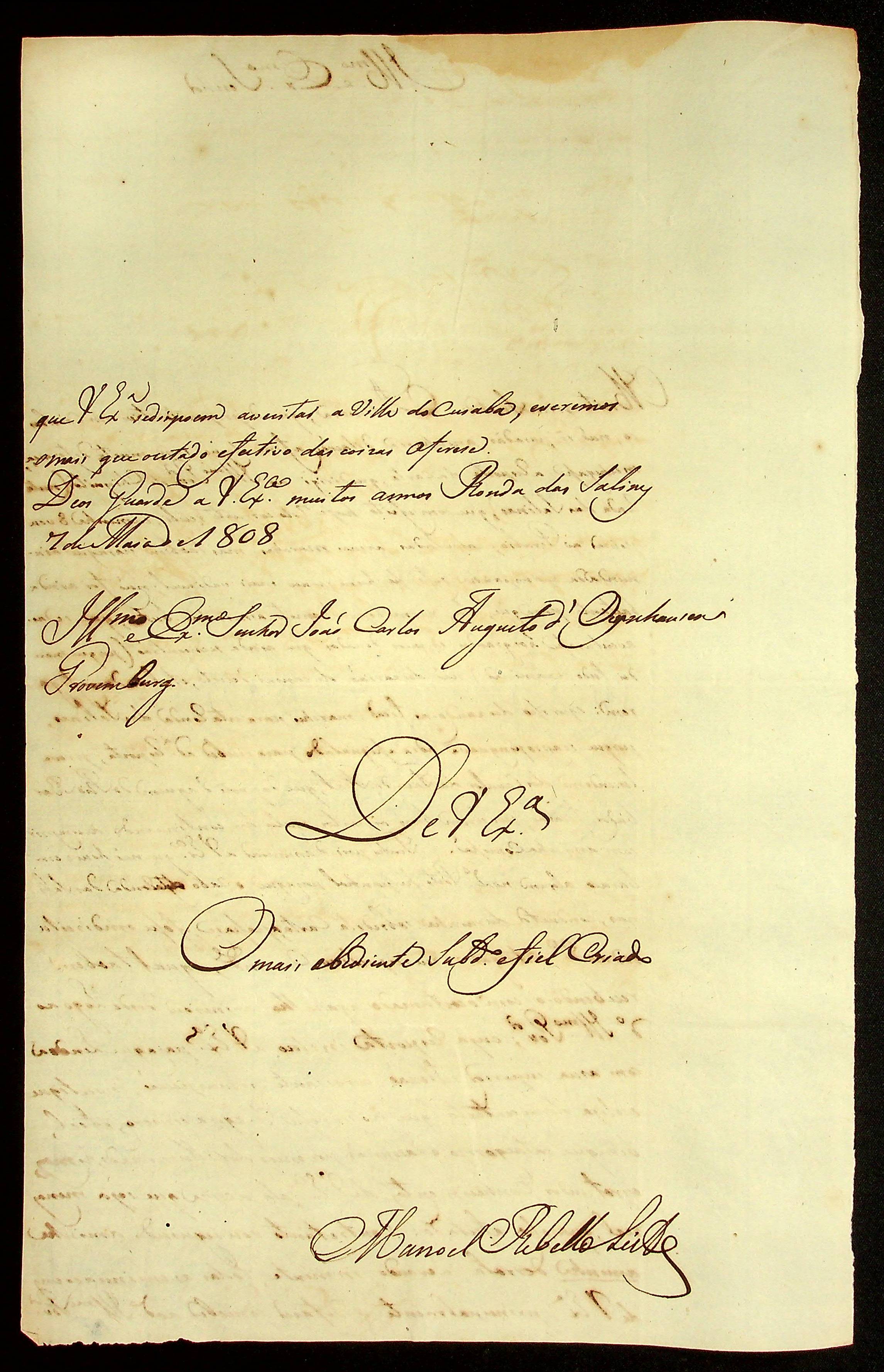 CARTA de Manoel [Rabelo] Leite ao [Governador e Capitão-General da Capitania de Mato Grosso] João Carlos Augusto d’Oeynhausen e Gravenberg.
