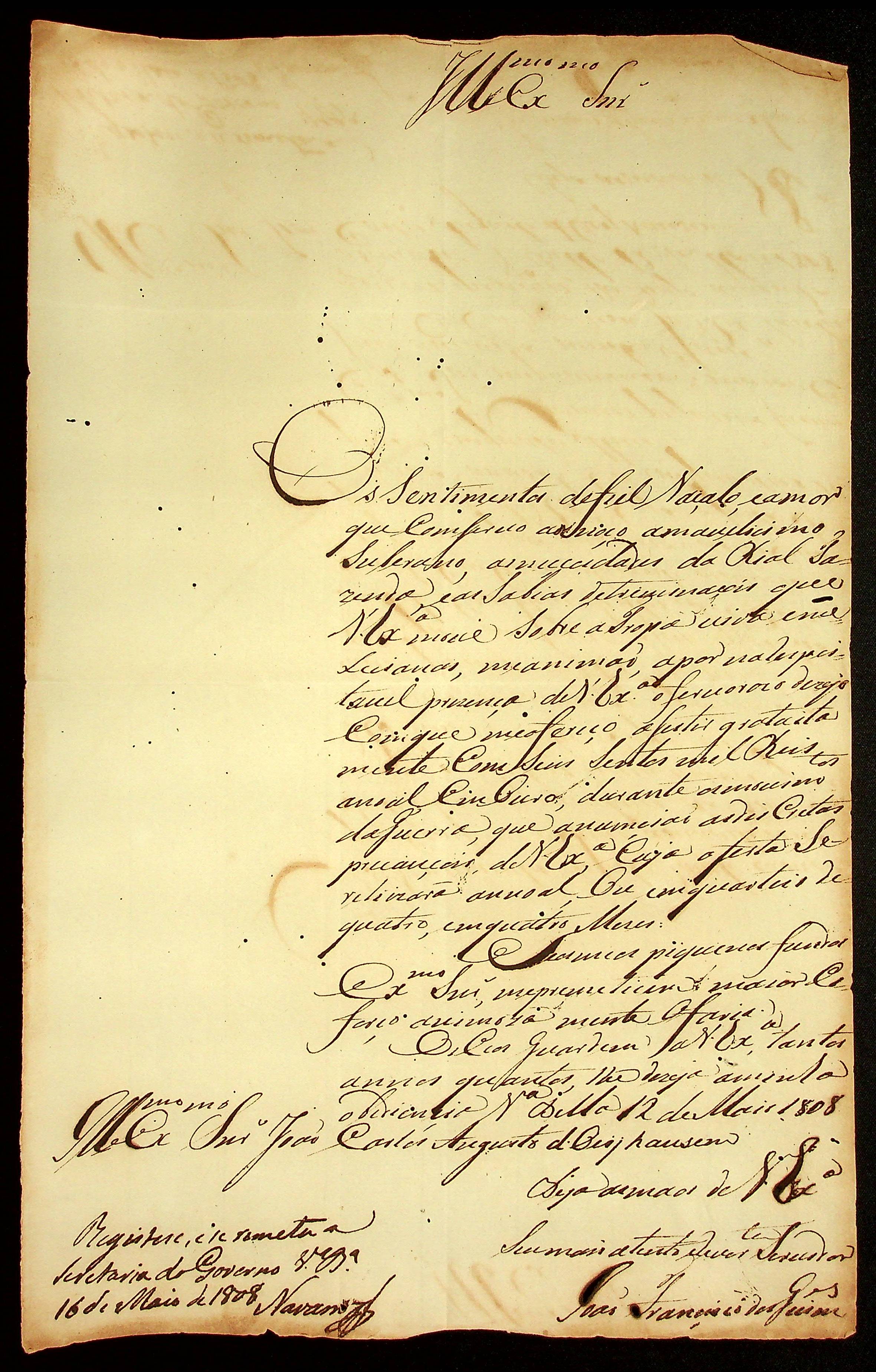 CARTA do [Alferes] João Francisco dos Guimarães ao [Governador e Capitão-General da Capitania de Mato Grosso] João Carlos Augusto d’Oeynhausen e Gravenberg.