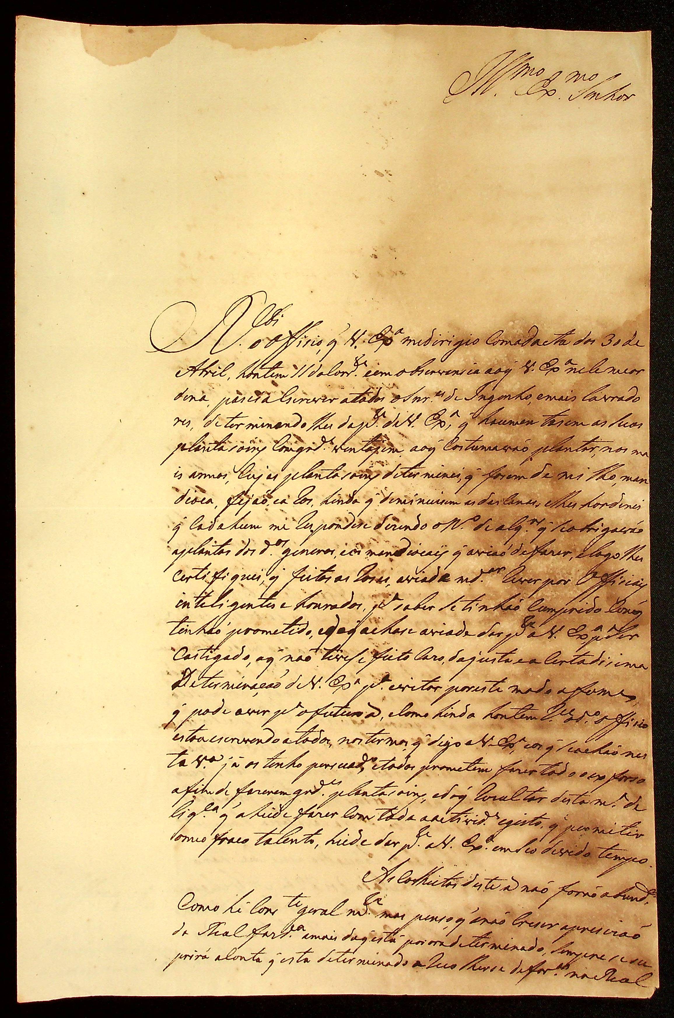 CARTA do [Tenente-Coronel da Legião de Milícias] Gabriel de Fonseca Souza ao [Governador e Capitão-General da Capitania de Mato Grosso] João Carlos Augusto d’Oeynhausen e Gravenberg.