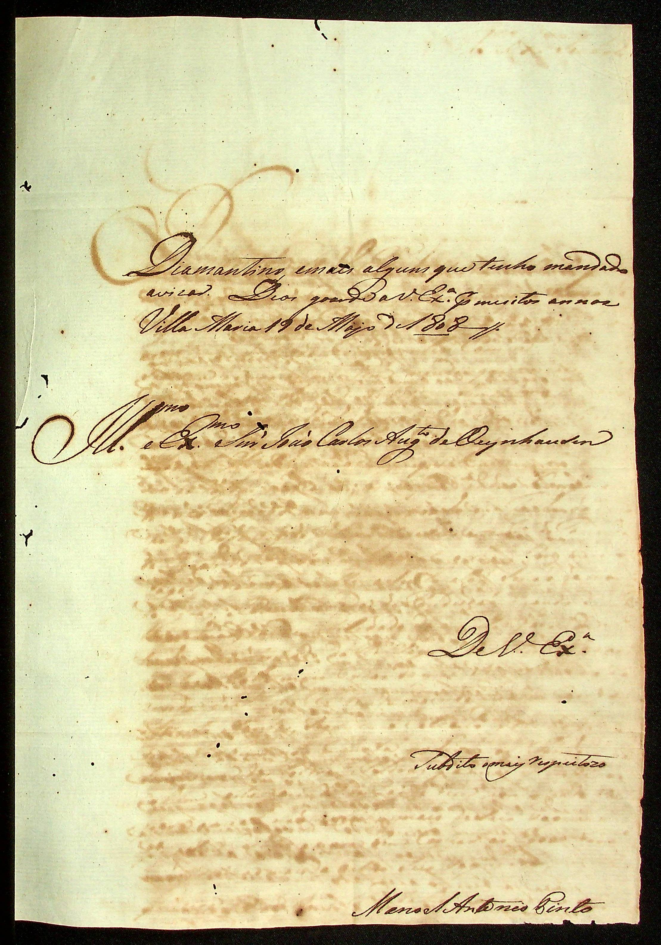 CARTA do Comandante de Vila Maria Manoel Antônio Pinto ao [Governador e Capitão-General da Capitania de Mato Grosso] João Carlos Augusto d’Oeynhausen e Gravenberg.