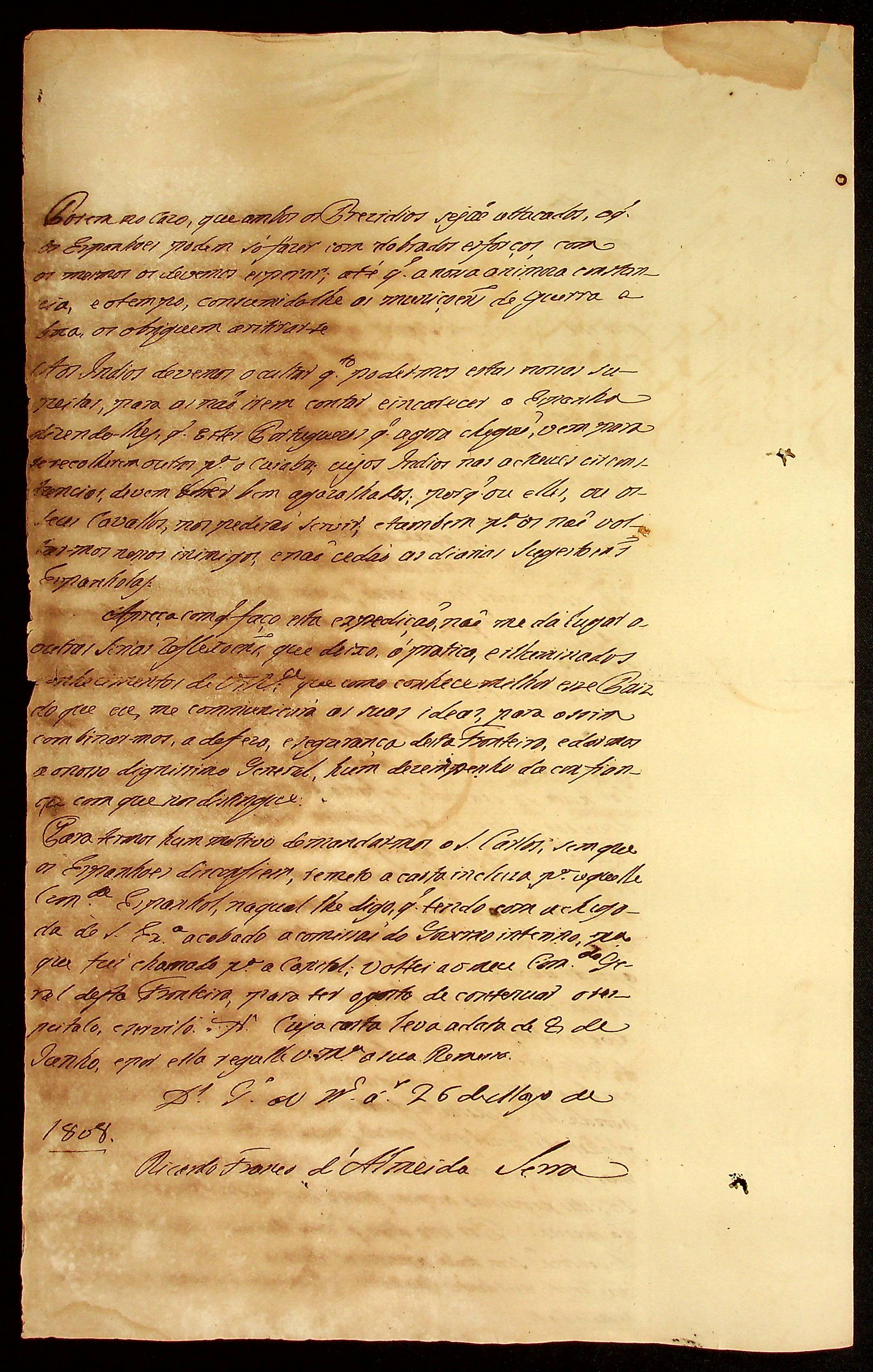 CARTA do [Coronel] Ricardo Franco de Almeida Serra ao Tenente Jerônimo Joaquim Nunes.