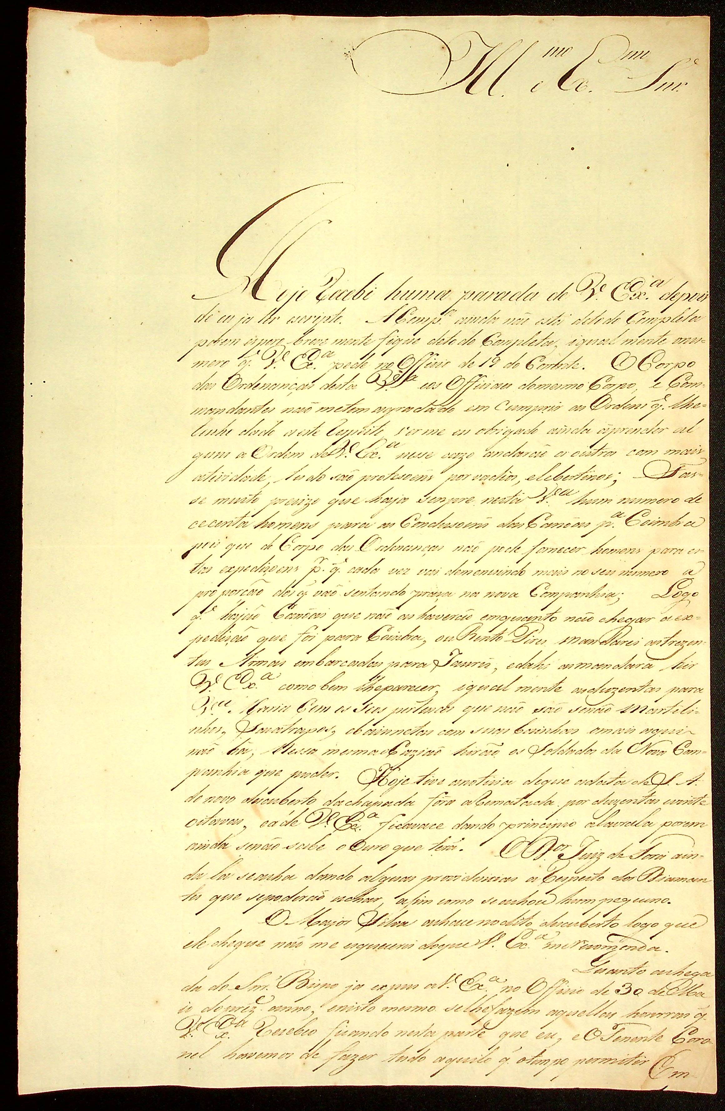 CARTA de Alexandre José Leite de Chaves Melo ao [Governador e Capitão-General da Capitania de Mato Grosso] João Carlos Augusto d’Oeynhausen e Gravenberg.