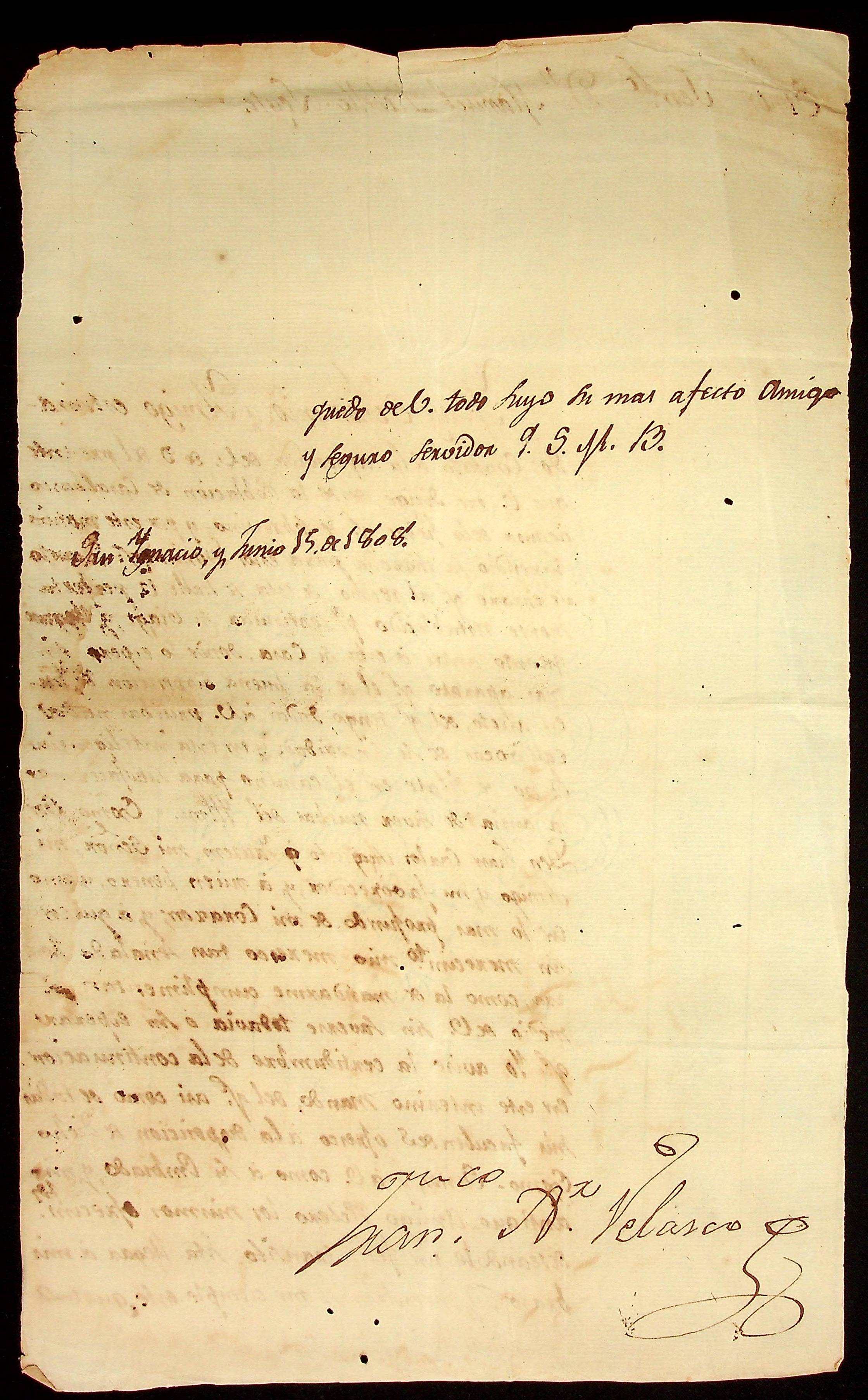 CARTA de Francisco Xavier Velasco ao Tenente Manoel [Rabelo] Leite.