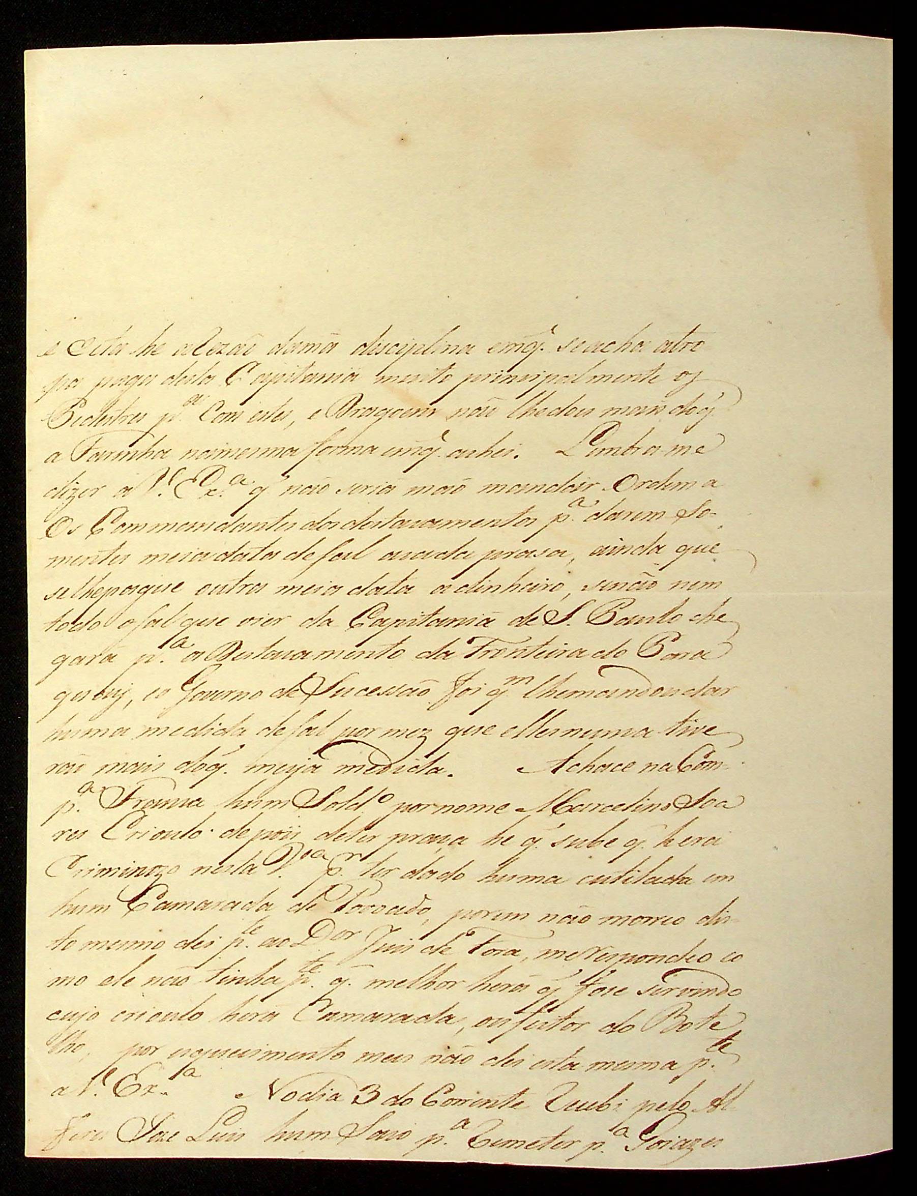 CARTA de Alexandre José Leite de Chaves Melo ao [Governador e Capitão-General da Capitania de Mato Grosso] João Carlos Augusto d’Oeynhausen e Gravenberg.