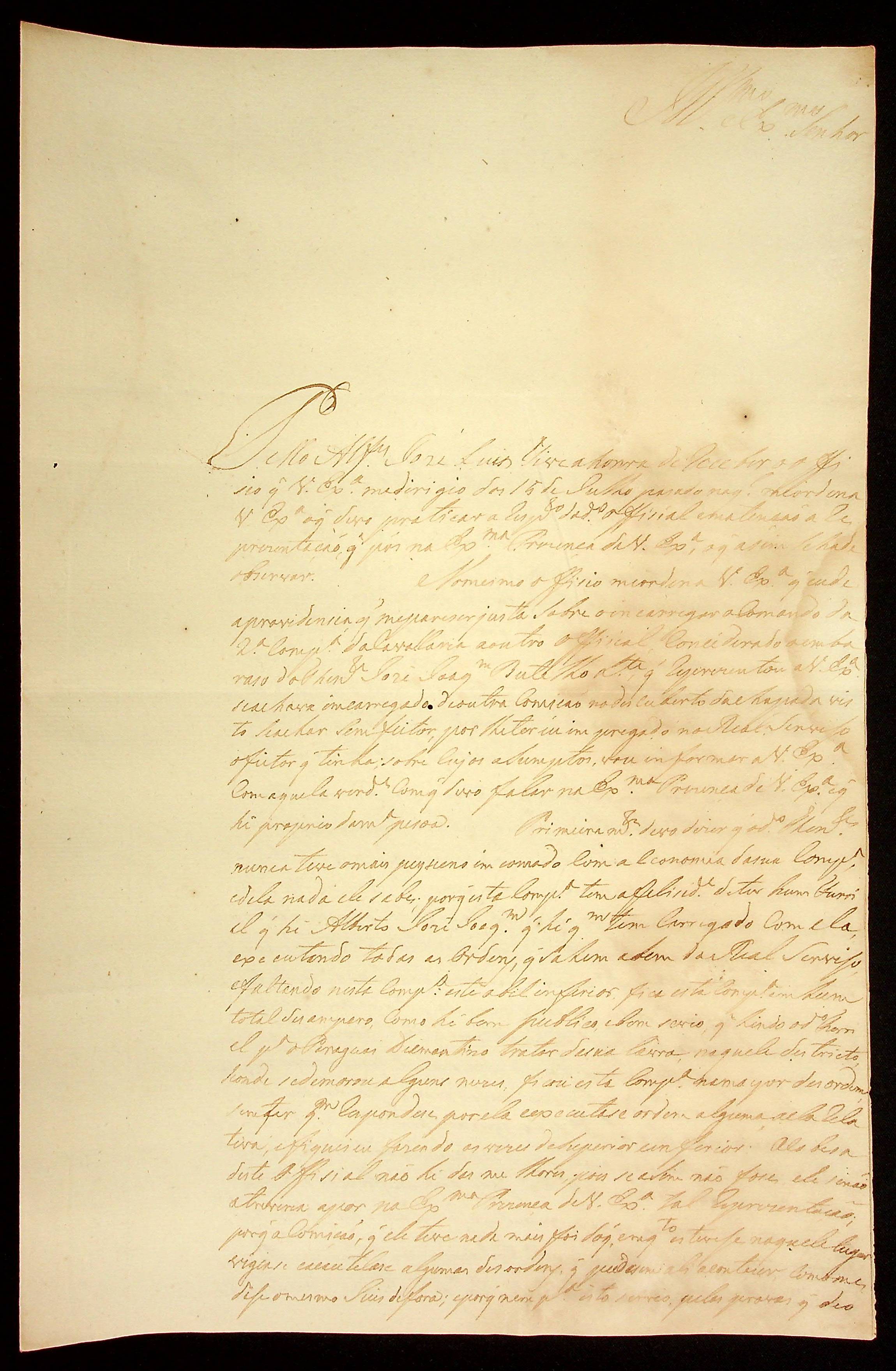 CARTA do [Tenente-Coronel] Gabriel de Fonseca Souza ao [Governador e Capitão-General da Capitania de Mato Grosso] João Carlos Augusto d’Oeynhausen e Gravenberg.