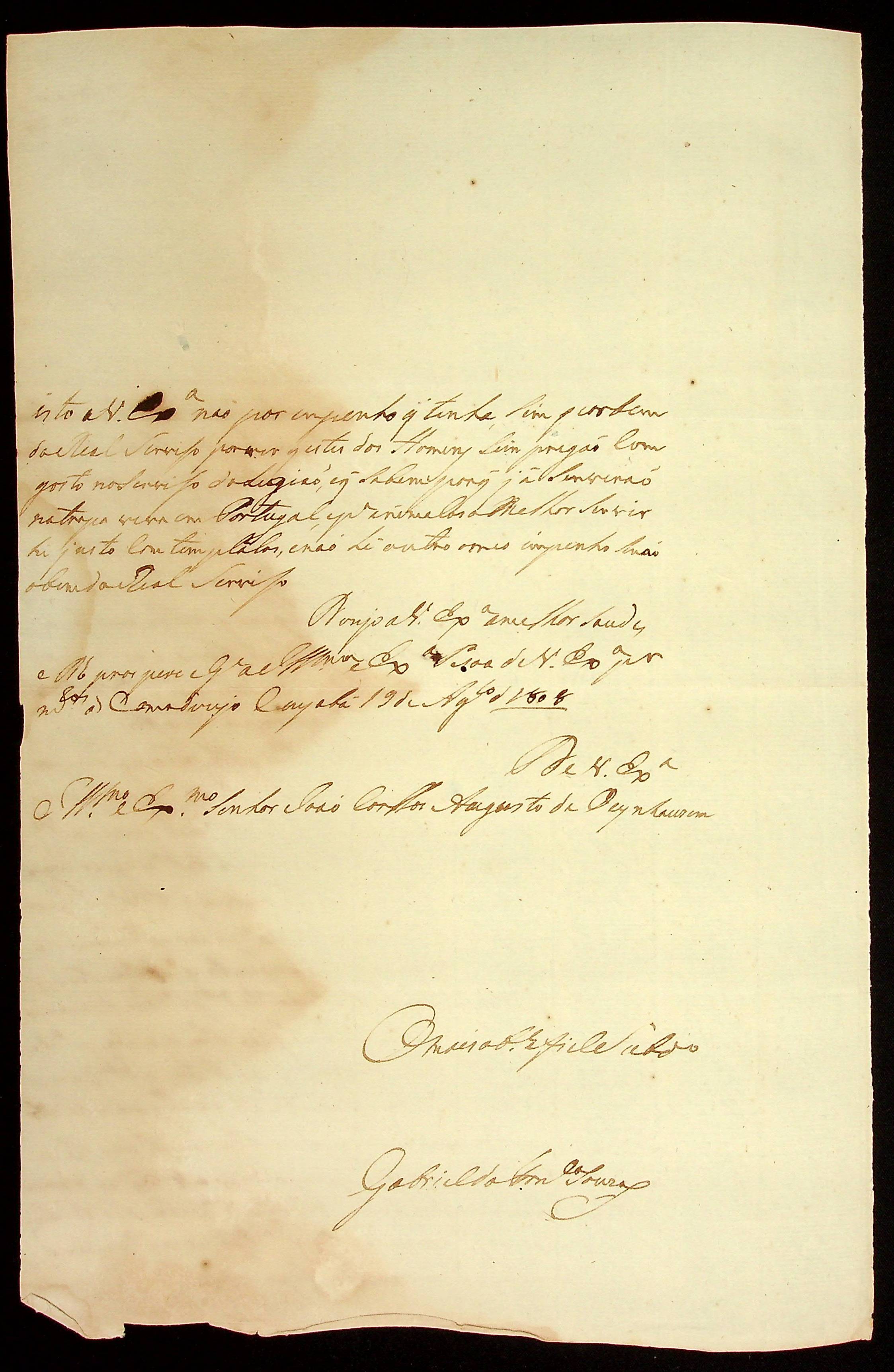 CARTA do [Tenente-Coronel] Gabriel de Fonseca Souza ao [Governador e Capitão-General da Capitania de Mato Grosso] João Carlos Augusto d’Oeynhausen e Gravenberg.