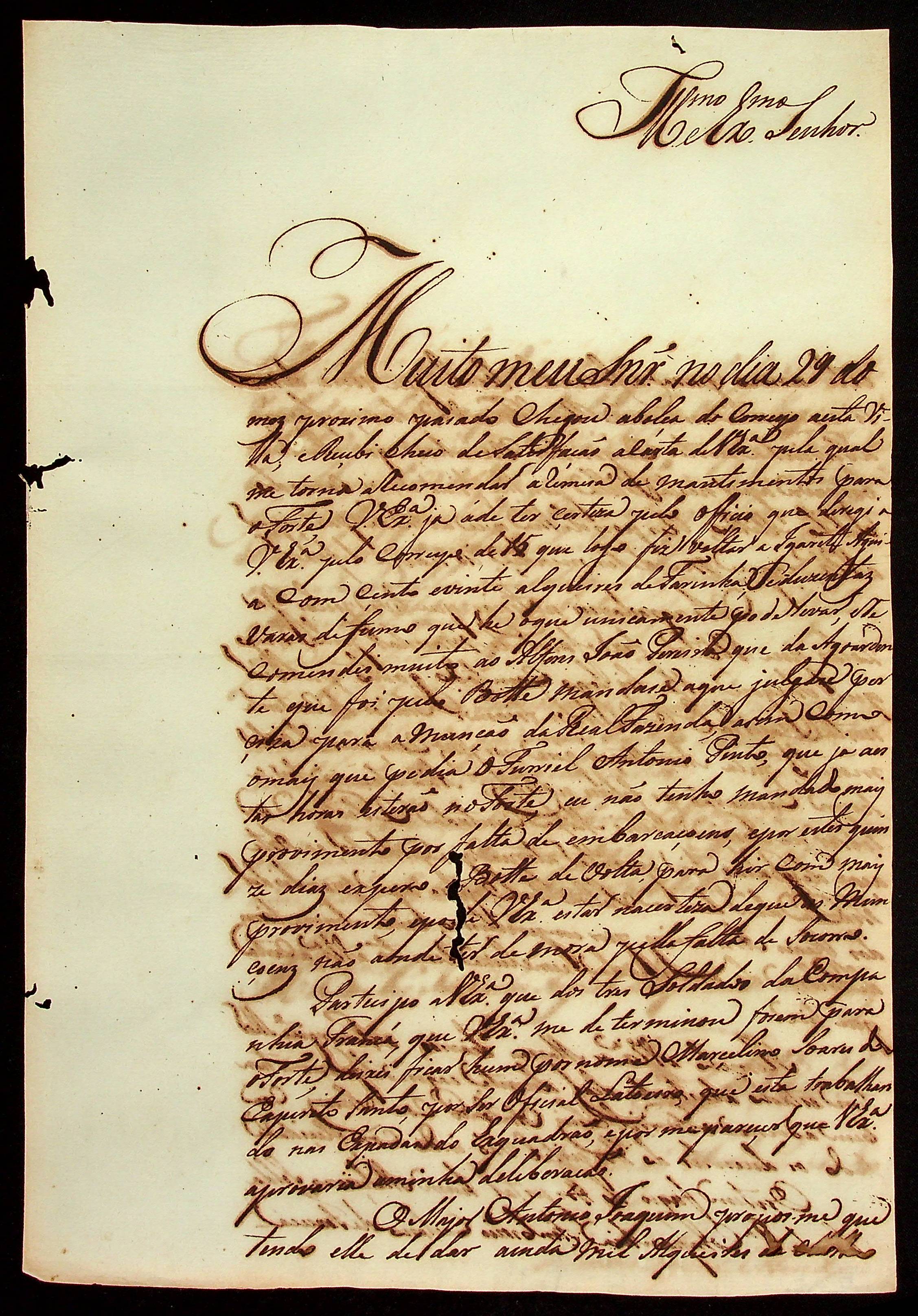 CARTA de Vitoriano Lopes de Macedo ao [Governador e Capitão-General da Capitania de Mato Grosso] João Carlos Augusto d’Oeynhausen e Gravenberg.