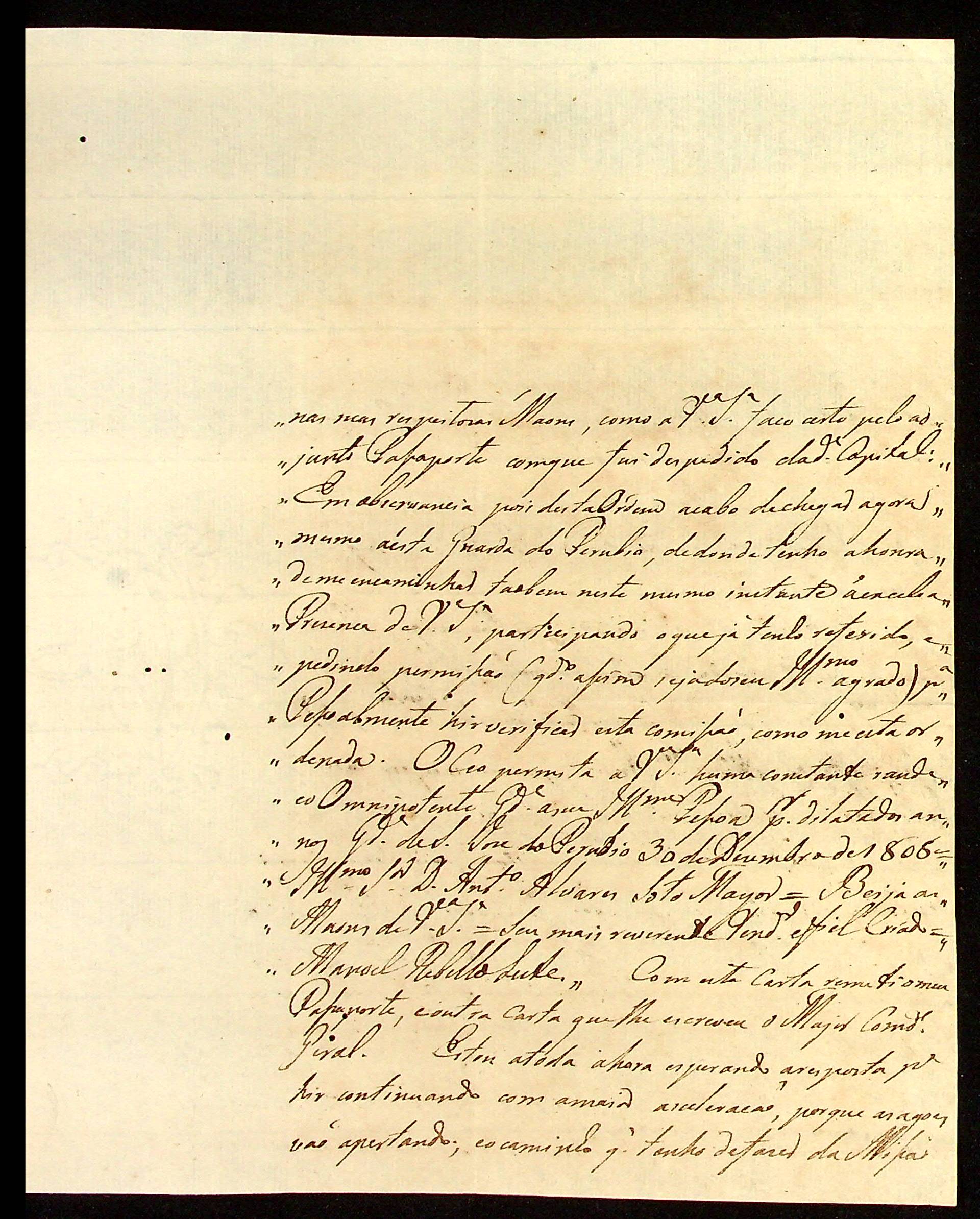 CARTA do Sargento-mor Manoel [Rabelo] Leite ao [Governador e Capitão-General da Capitania de Mato Grosso] João Carlos Augusto d’Oeynhausen e Gravenberg.