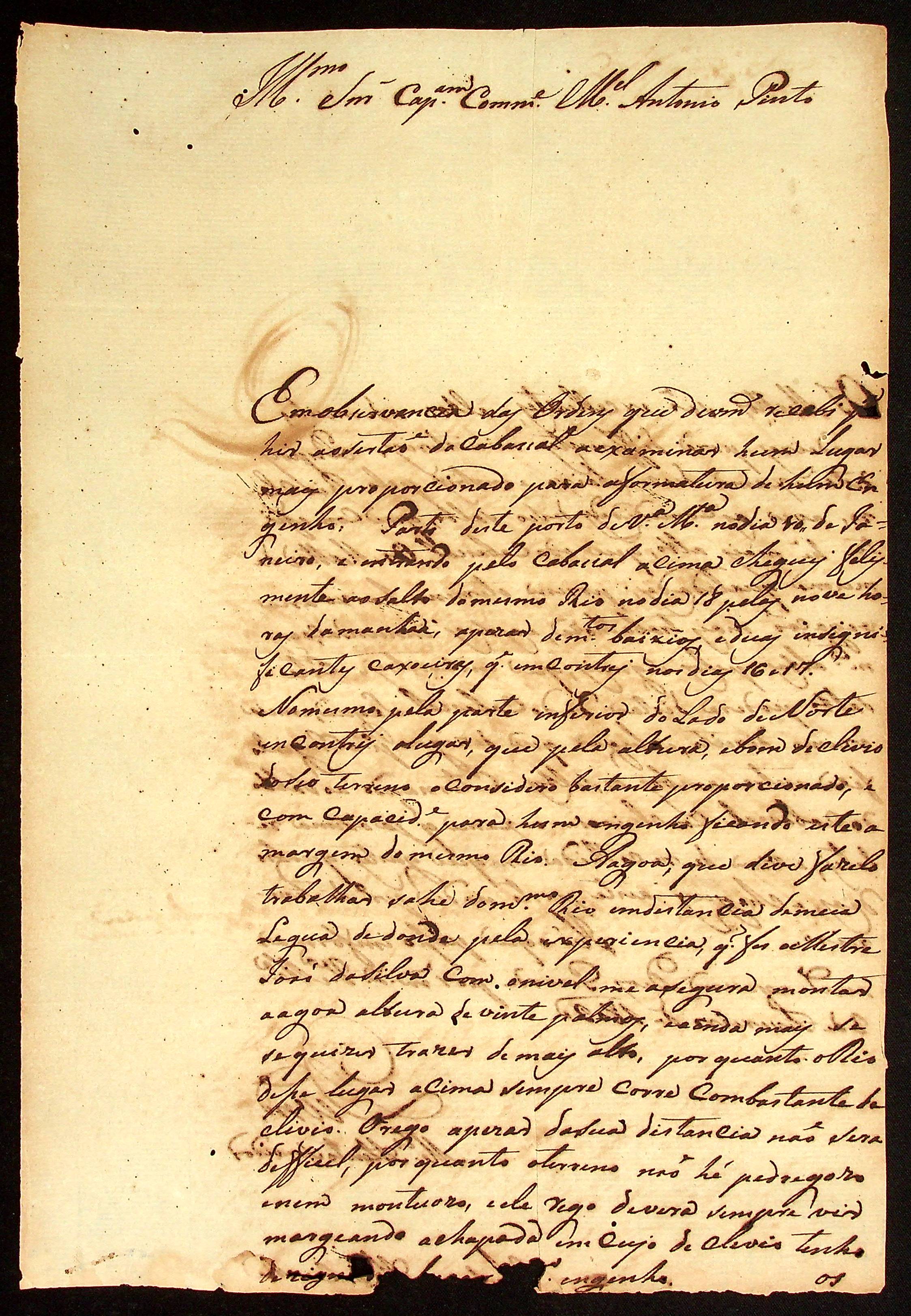 CARTA de [.. Cunha] ao Capitão Comandante [de Vila Maria] Manoel Antônio Pinto.