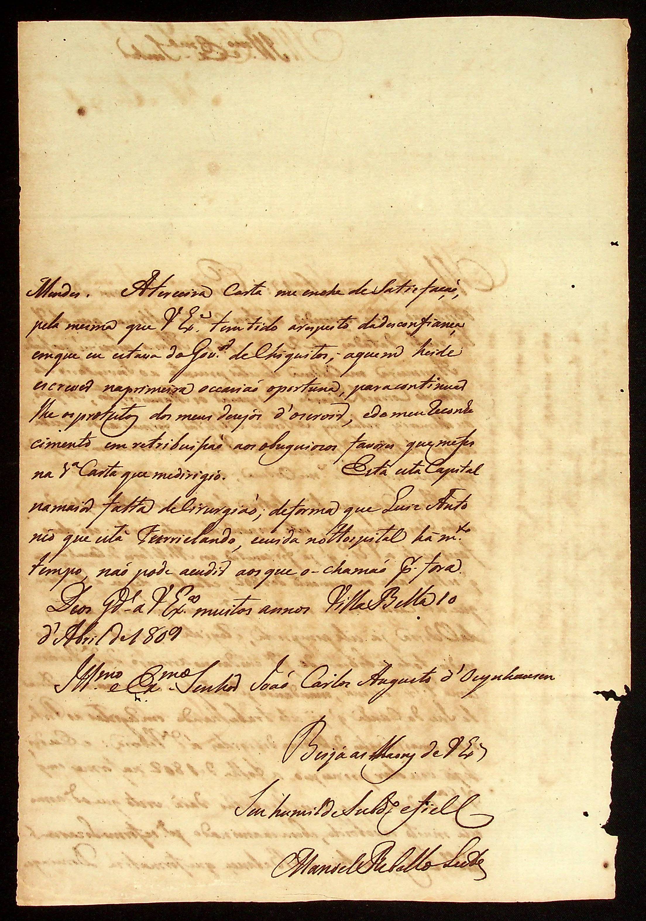 CARTA de Manoel [Rabelo] Leite ao [Governador e Capitão-General da Capitania de Mato Grosso] João Carlos Augusto d’Oeynhausen e Gravenberg.