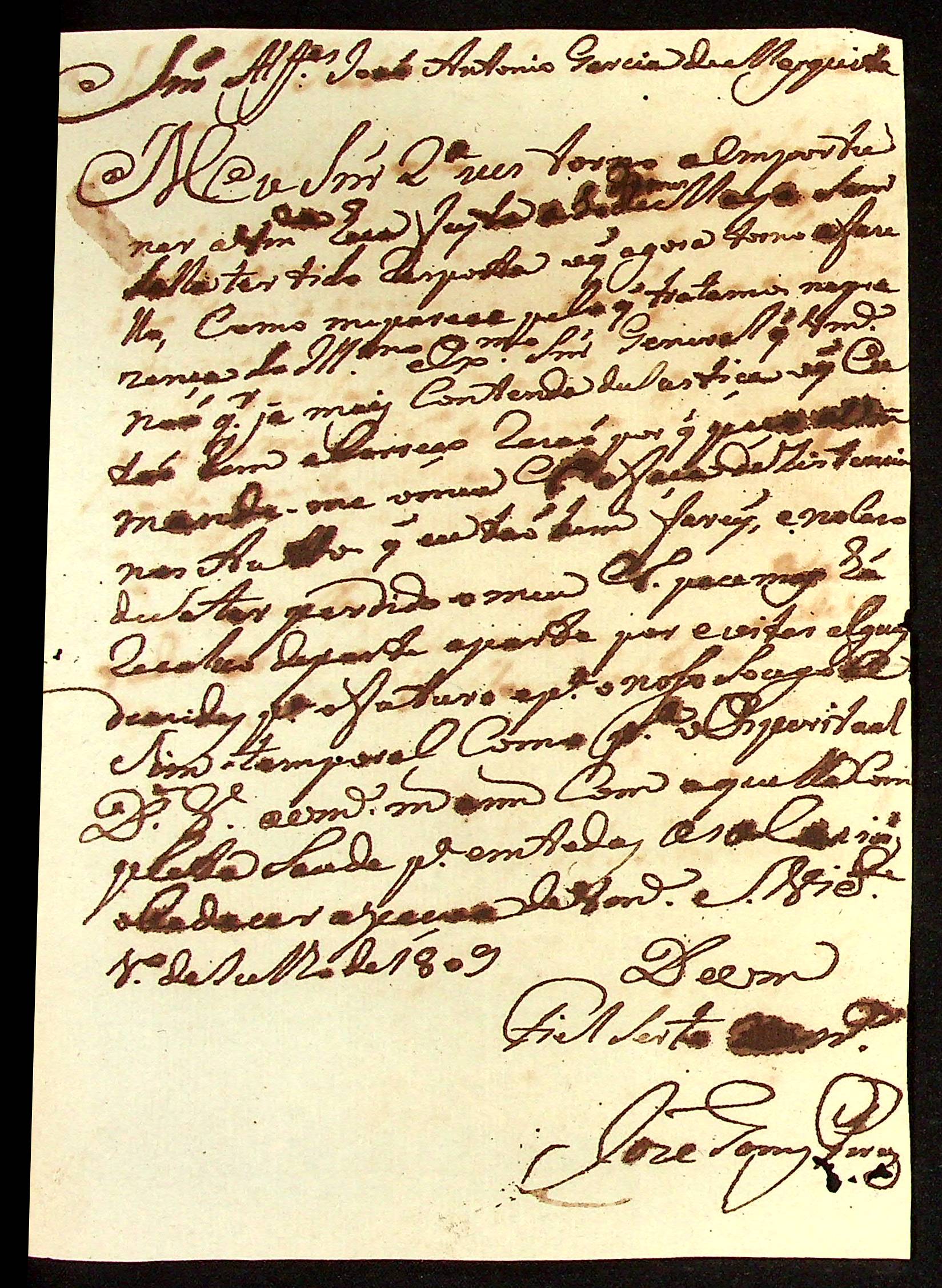 CARTA de José Gomes Pires ao Alferes João Antônio Garcia de Mesquita.