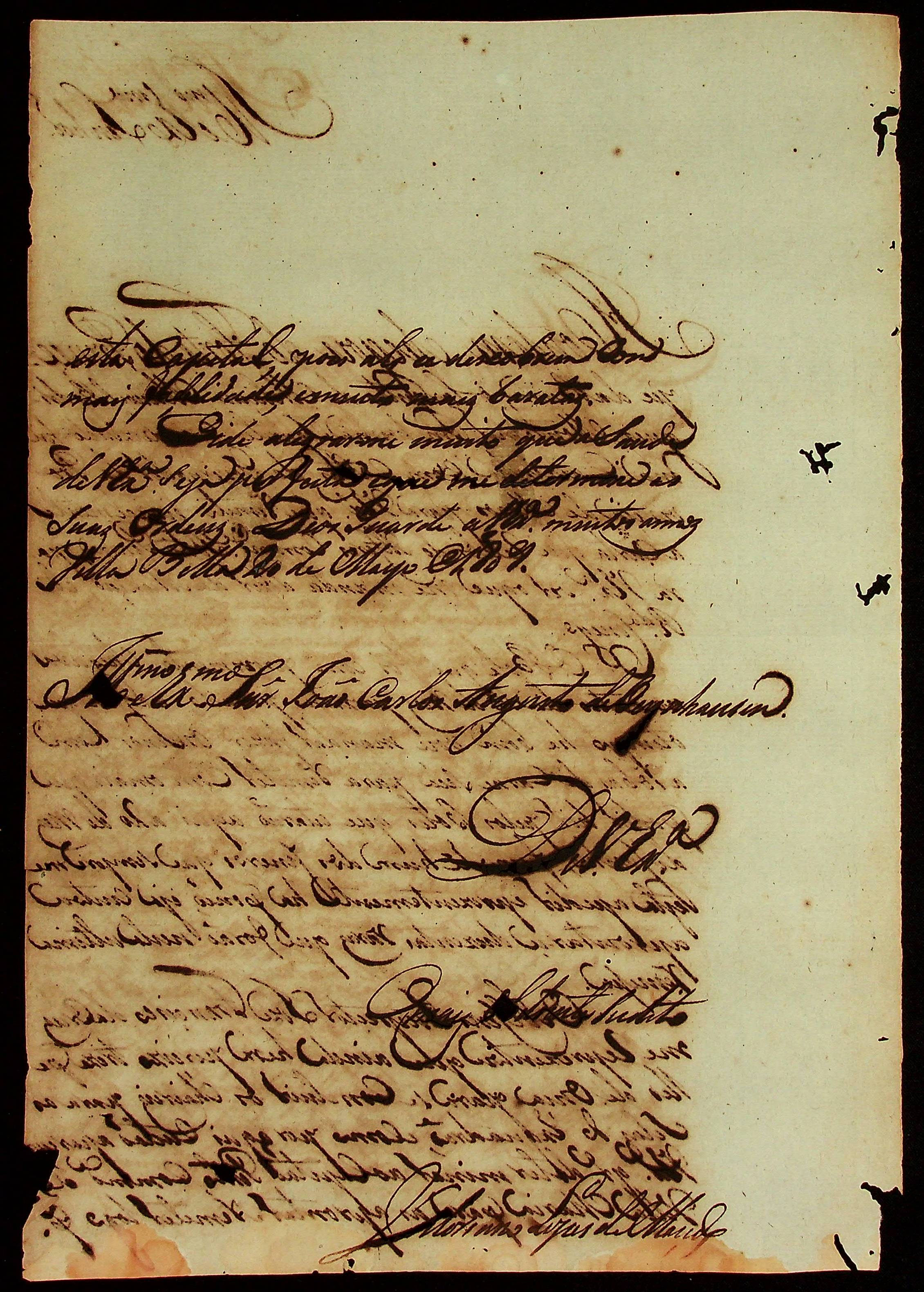 CARTA de Vitoriano Lopes de Macedo ao [Governador e Capitão-General da Capitania de Mato Grosso] Carlos Augusto d’Oeynhausen e Gravenberg.