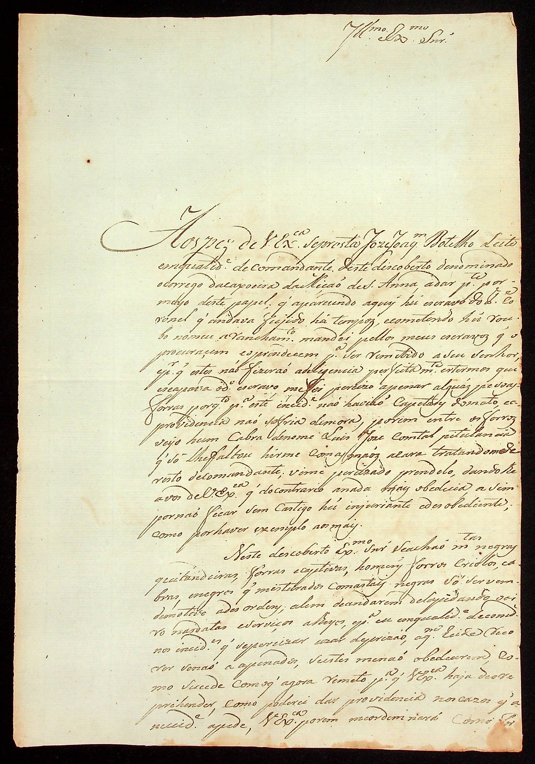 CARTA de José Joaquim Botelho Leite ao [Governador e Capitão-General da Capitania de Mato Grosso] João Carlos Augusto d’Oeynhausen e Gravenberg.